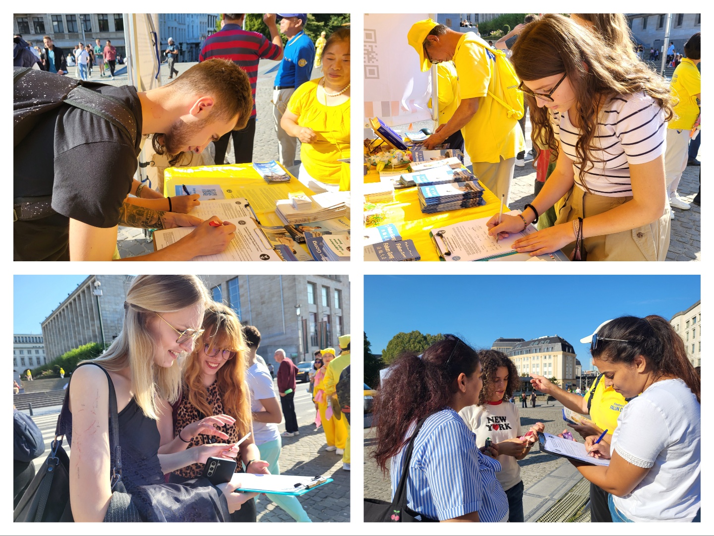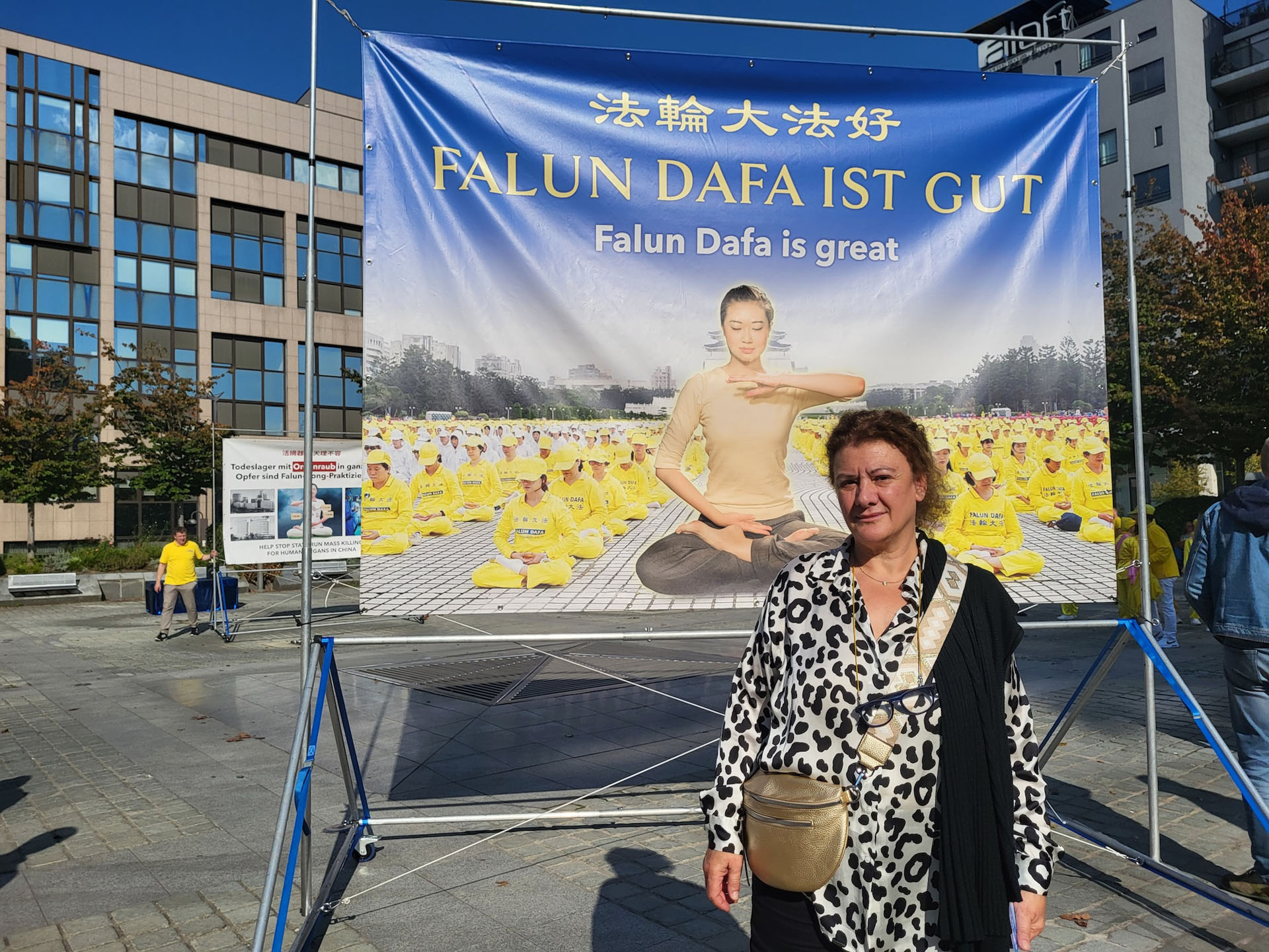 在明白了真相后,伊内斯立即签名制止迫害。她说:“我签名,因为对我来说这(迫害)是不正常的,是应该停止的事情。迫害,折磨好人,太可怕了,迫害必须停止。希望我的签名,可以帮助制止这场迫害。” 当听说在此炼功的法轮功学员来自多个欧洲国家,伊内斯觉得很好,她认为,学员来到这里向人们表达了良好的价值观,展示了一个良好的环境。她说:“他们用行动善意地告诉人们法轮大法好,迫害必须停止。” 学员告诉她法轮功网站有更多的资料,而且所有相关书籍免费下载。她对学员说:“我将告诉人们发生的这件事情,包括亲朋好友,我要上网站上更好地了解法轮功,并要查看功法和书籍。谢谢你!”