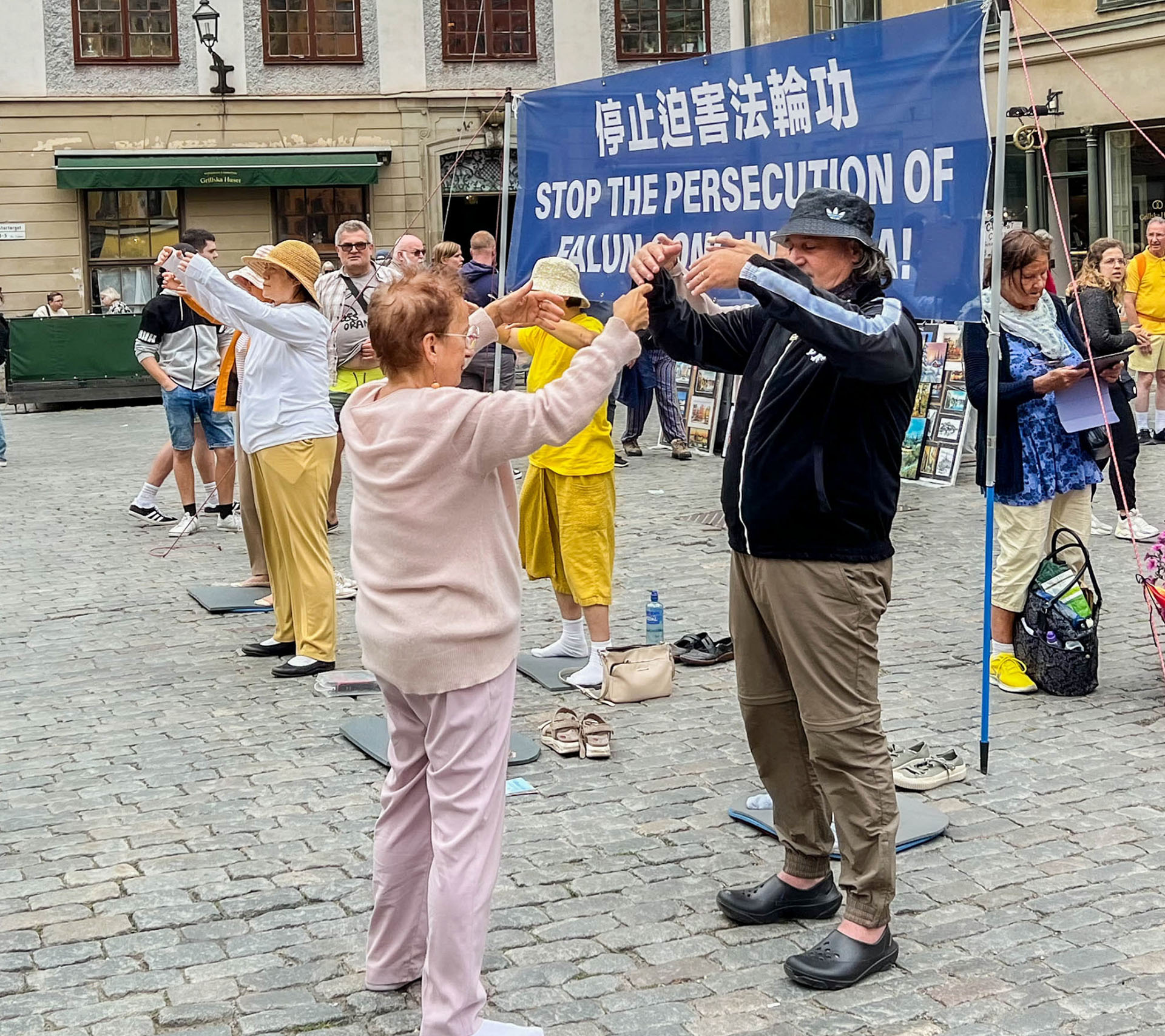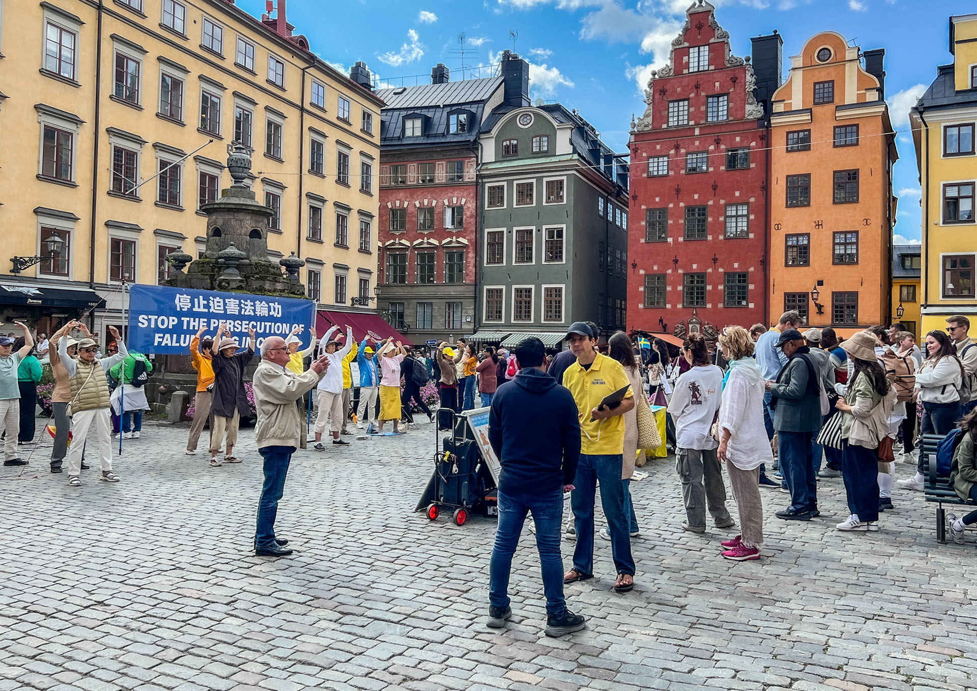 ![]() 图1:二零二四年九月份每周五和周六两天的下午,法轮功学员在斯德哥尔摩诺贝尔博物馆前向民众演示法轮功五套功法,举办讲真相活动。 |