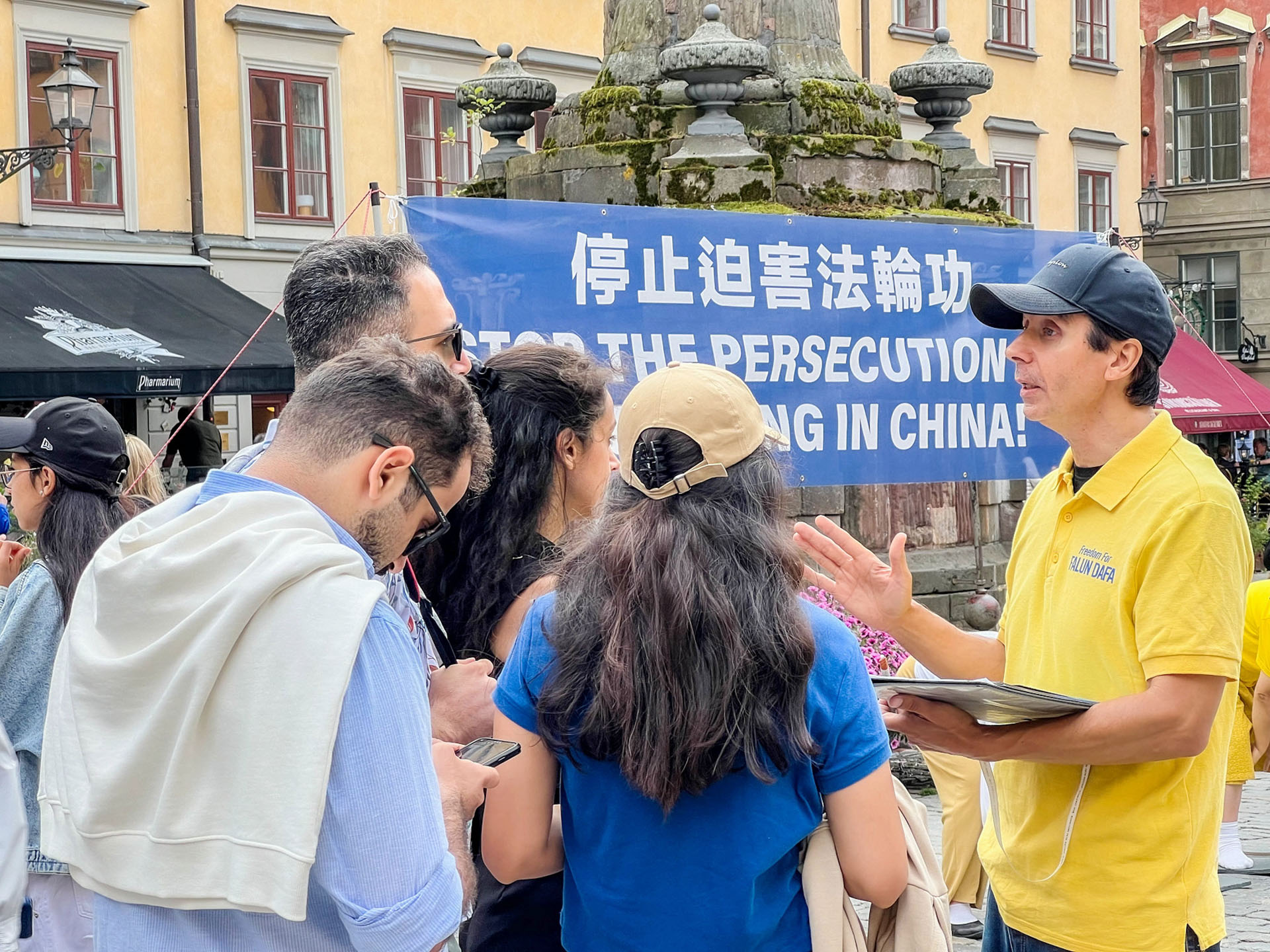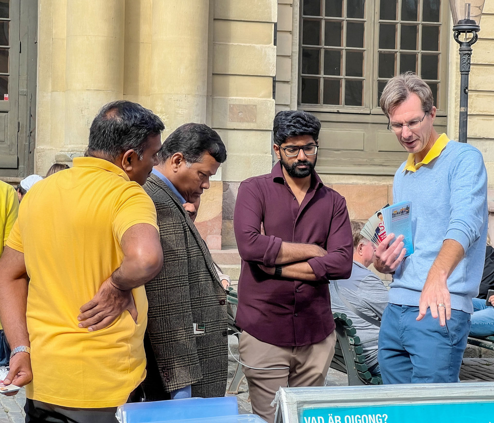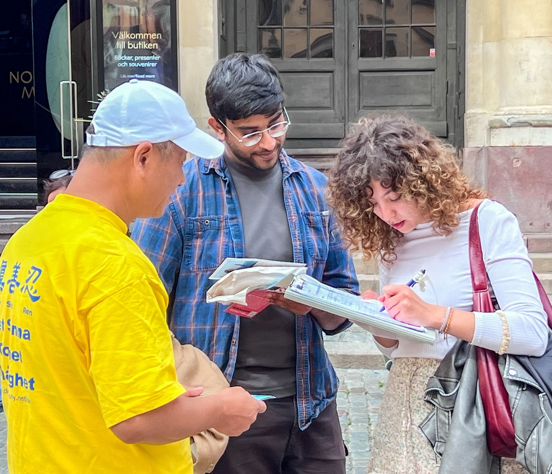 还有一位正在斯德哥尔摩大学读书的香港人,他主动走上前毫不犹豫地在征签簿上签了名并表示支持法轮功。学员问他:“是否了解法轮功?”