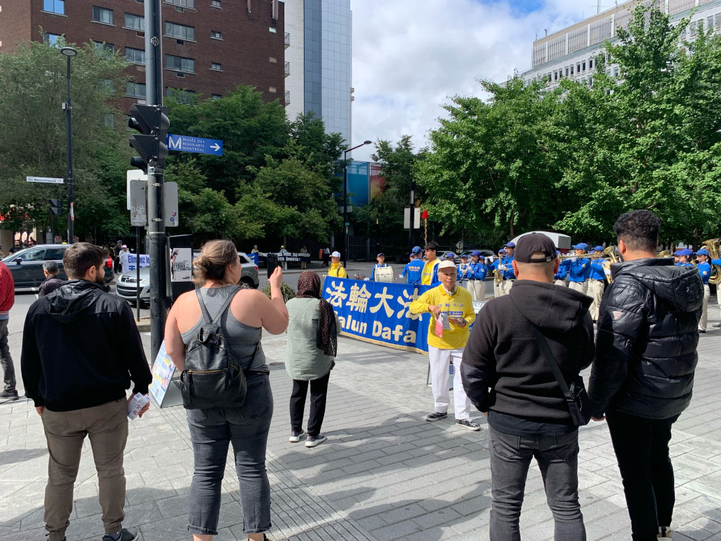 ![]() 图7:市民罗德里格(Rodrigue)向法轮功学员表达支持 |