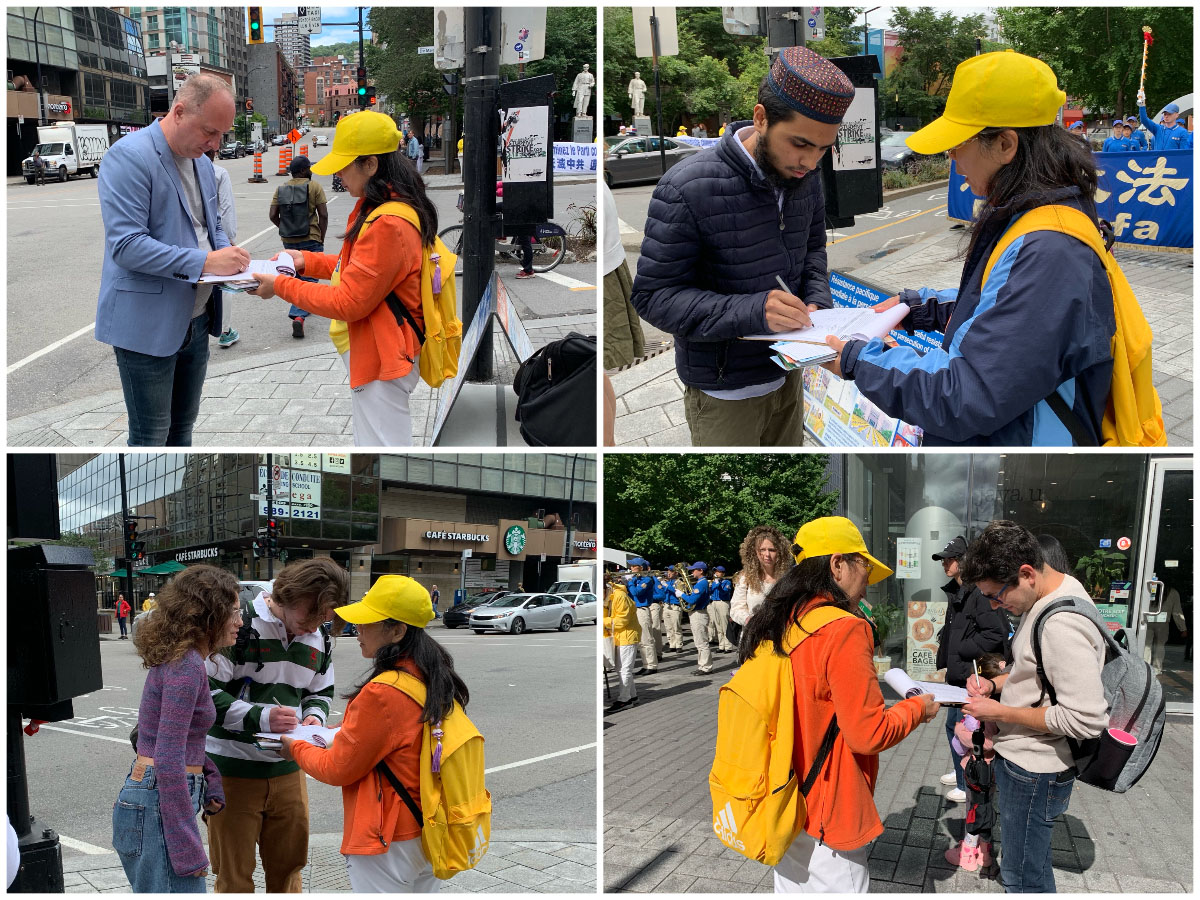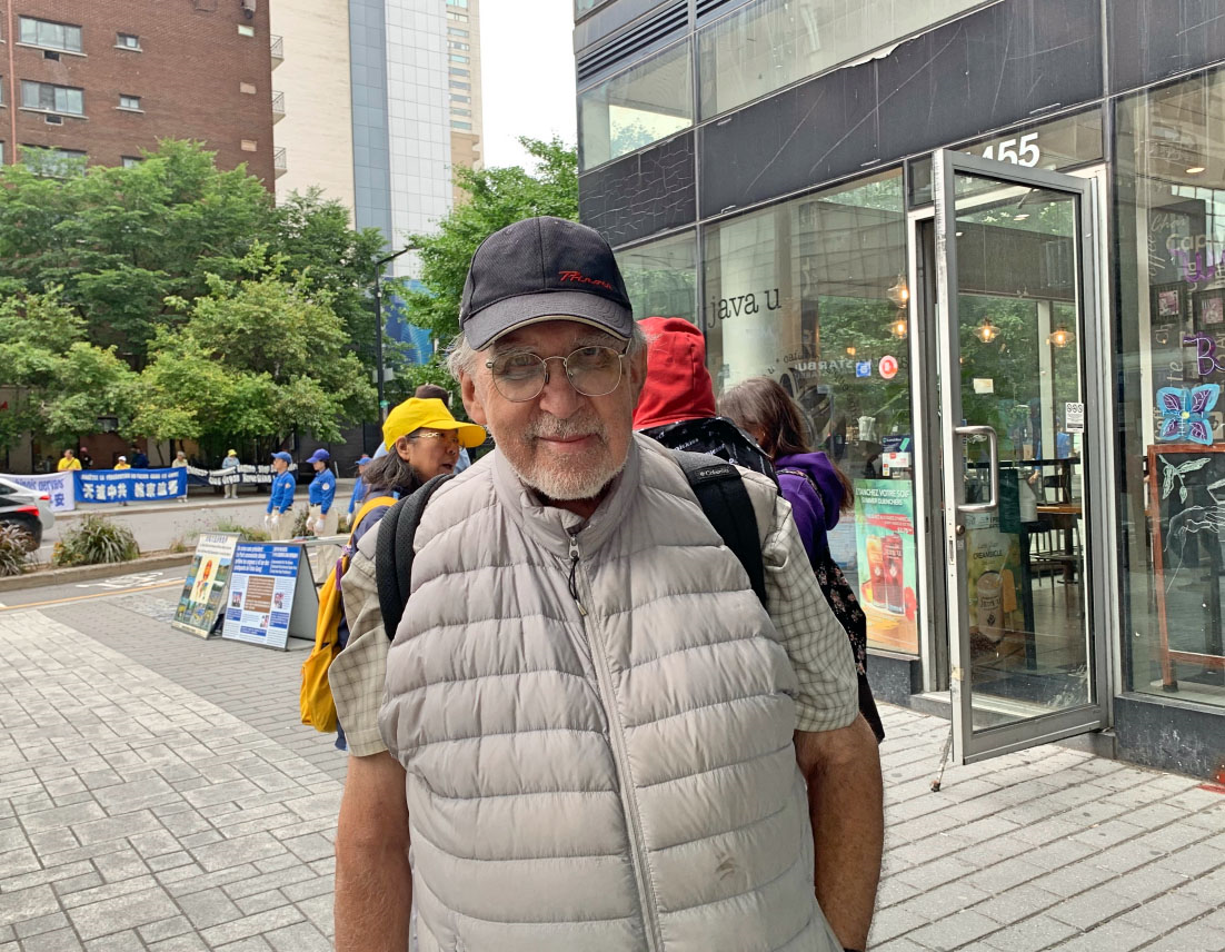 来自萨斯喀彻温省的青年游客奥罗拉(Arola)和父母都在征签信上签了名,他说:“表面上,人们以为中国大陆发展得很好,然而,被掩盖的真实情况是令人发指的。你们在这里揭露中共,是非常正义合理的,请坚持下去。”临走时他说:“谢谢你们。”