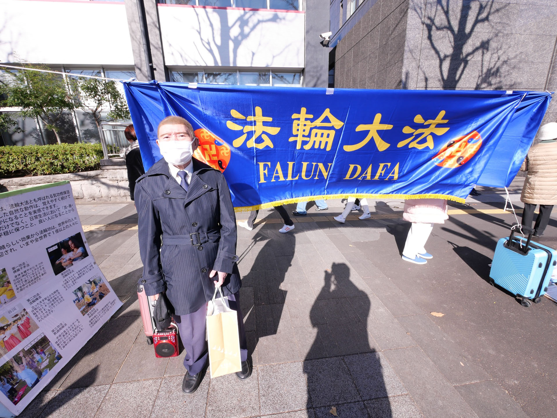 田中先生曾是一名自卫队队员。他知道法轮功学员每年都会在此讲真相,对学员们的活动表示赞同,说到:“你们做的事没有错。是有勇气的行为。我赞成。只要共产主义存在,世界就没有和平。”
