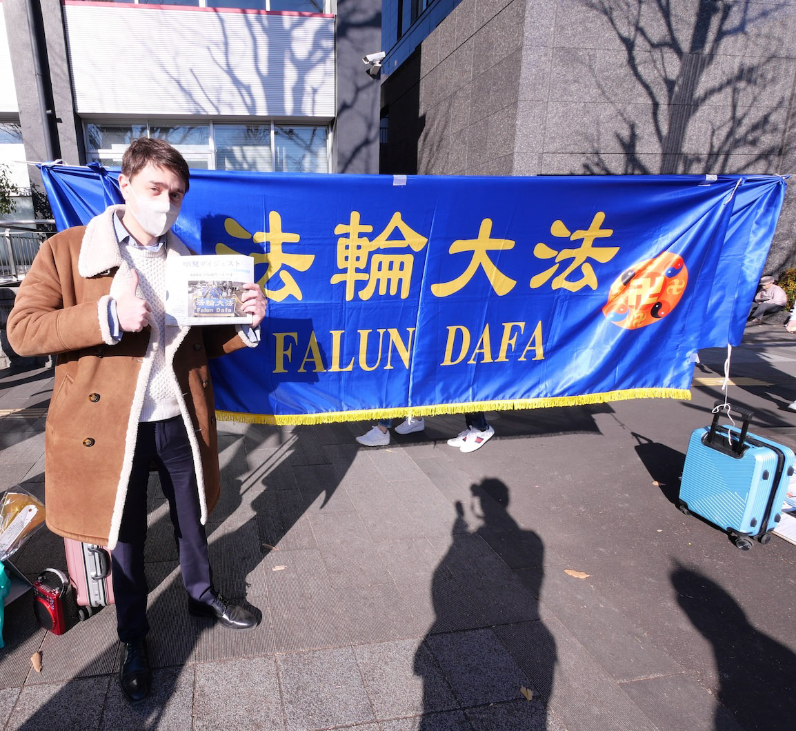 铃木先生也是一位已了解真相的日本人。他对法轮功学员们说:“请加油。”
