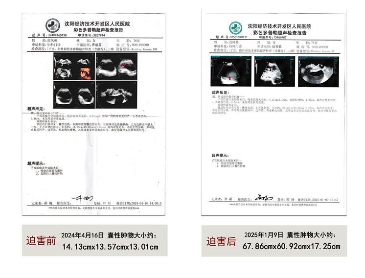 ![]() 腹盆腔囊肿物大小是迫害前的近三十倍 |