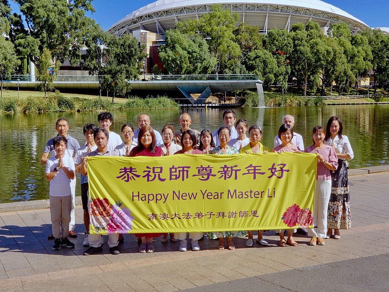 ![]() 图1:墨尔本法轮功学员恭祝师尊过年好! |