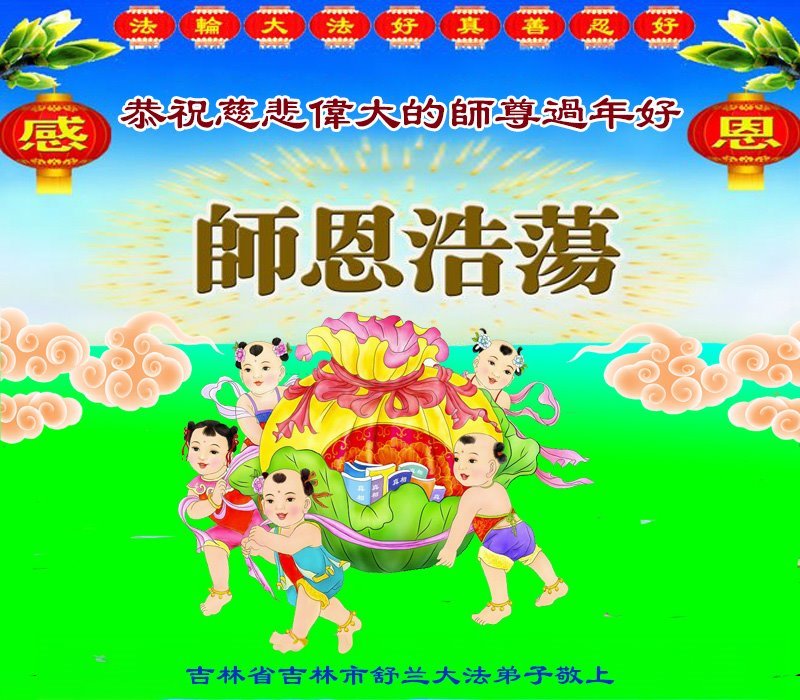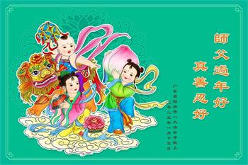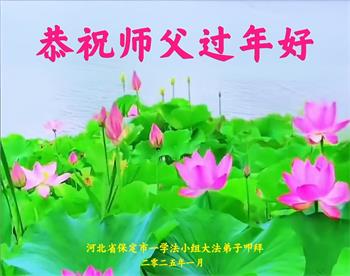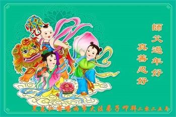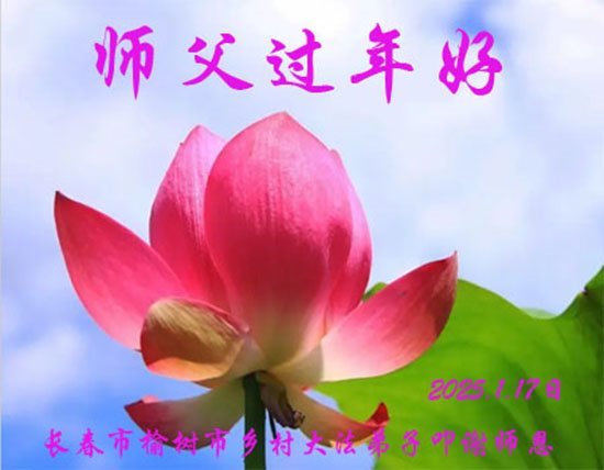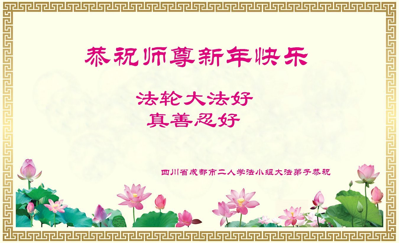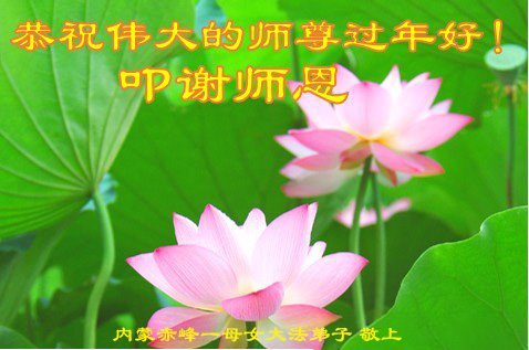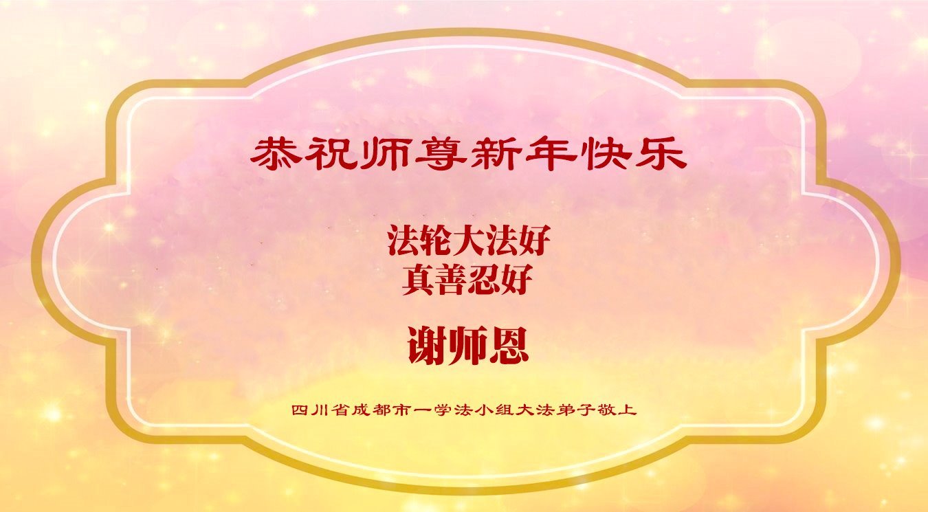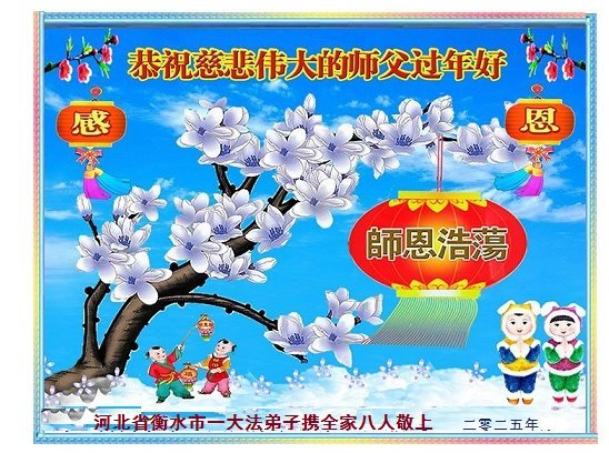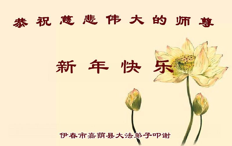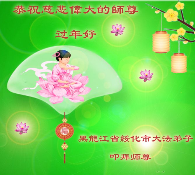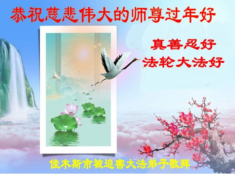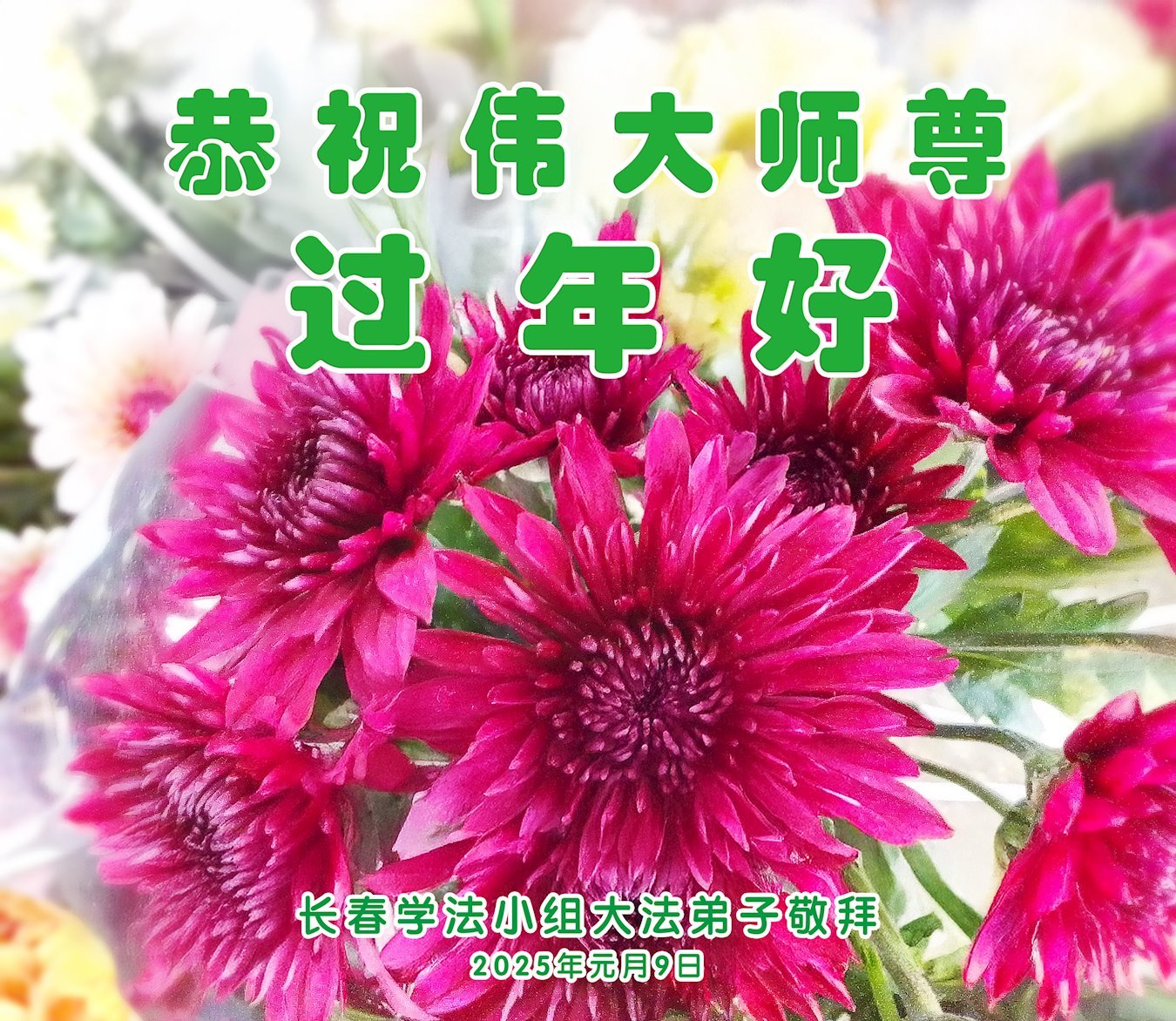感恩师父的慈悲救度!感恩师父将我们从地狱中捞出洗净,引领我们走上一条返本归真之路。在新年到来之际,我们全家大法弟子及新学员(共6人)给慈悲伟大的师尊拜年:师父过年好!师父您辛苦了!
