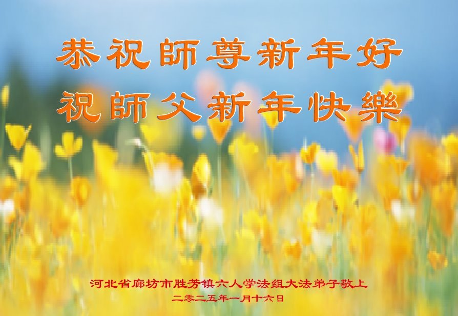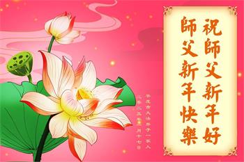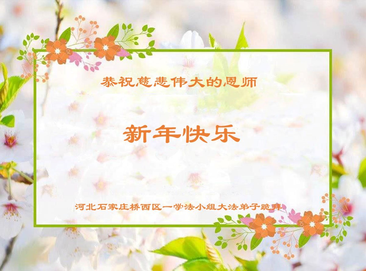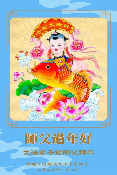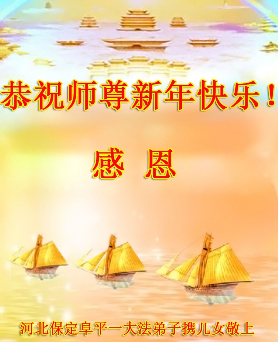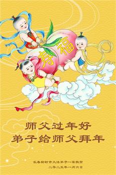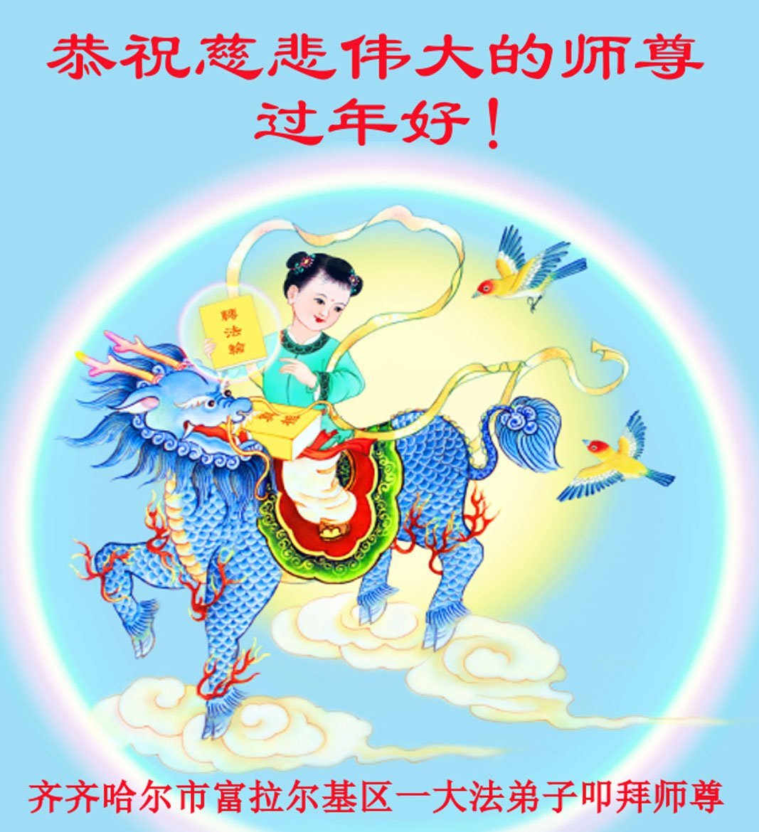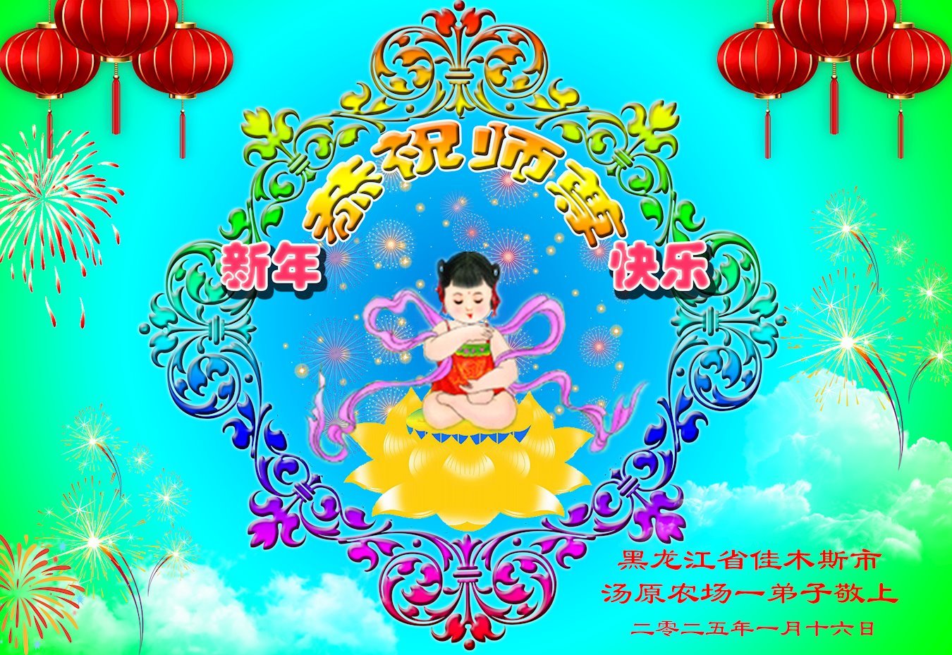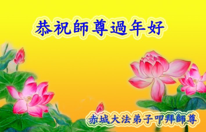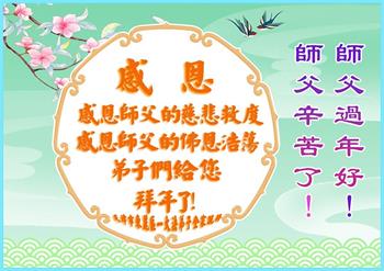 感恩师父的慈悲救度!感恩师父将我们从地狱中捞出洗净,引领我们走上一条返本归真之路。在新年到来之际,我们全家大法弟子及新学员(共6人)给慈悲伟大的师尊拜年:师父过年好!师父您辛苦了!