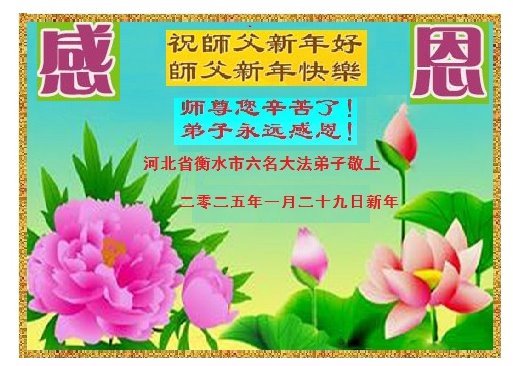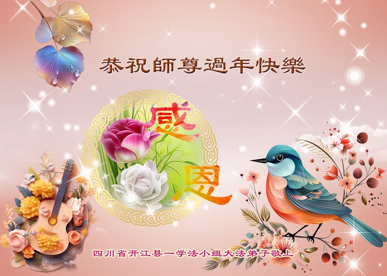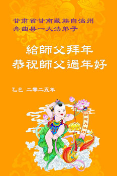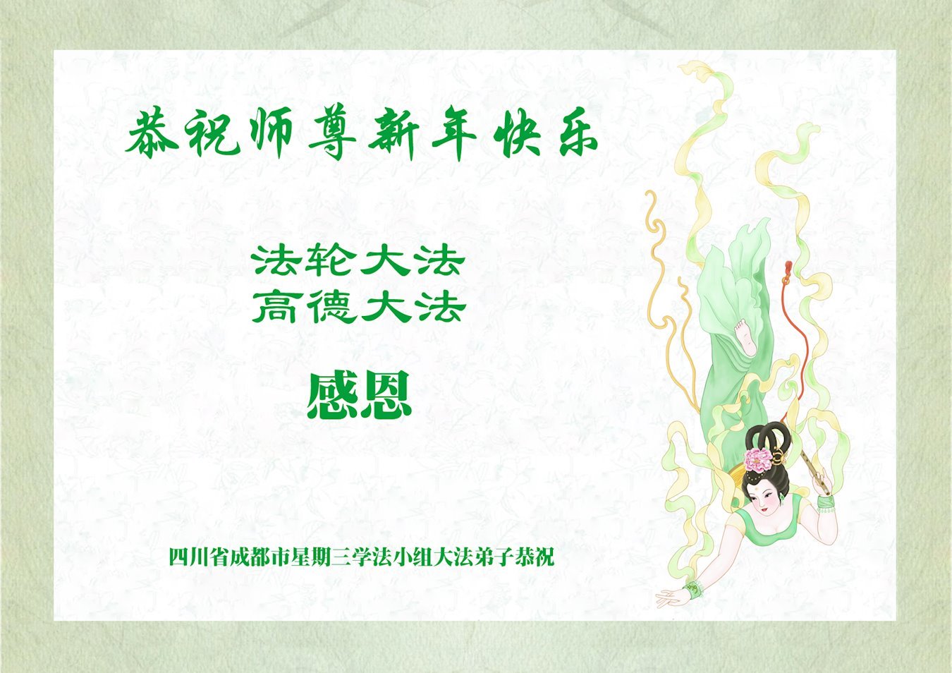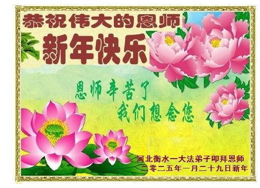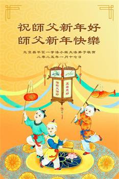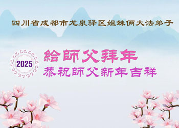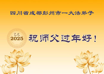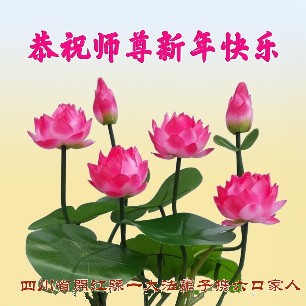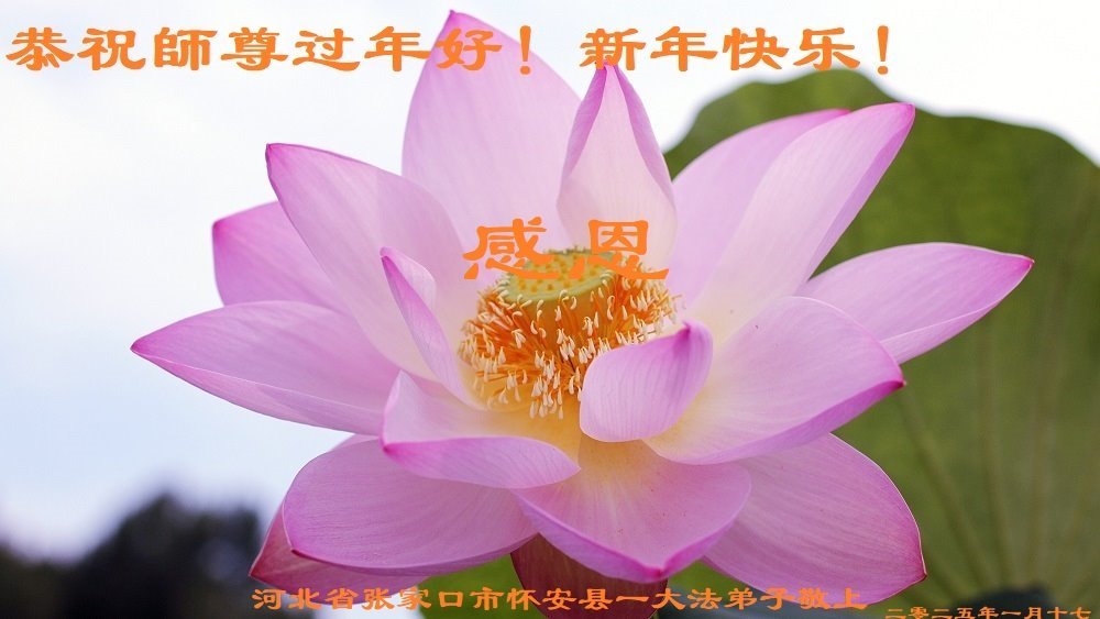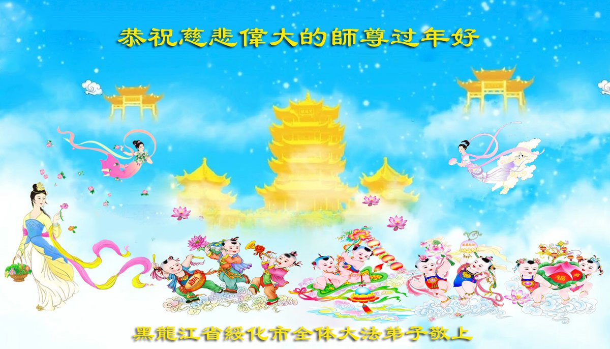 感恩师父的慈悲救度!感恩师父将我们从地狱中捞出洗净,引领我们走上一条返本归真之路。在新年到来之际,我们全家大法弟子及新学员(共6人)给慈悲伟大的师尊拜年:师父过年好!师父您辛苦了!