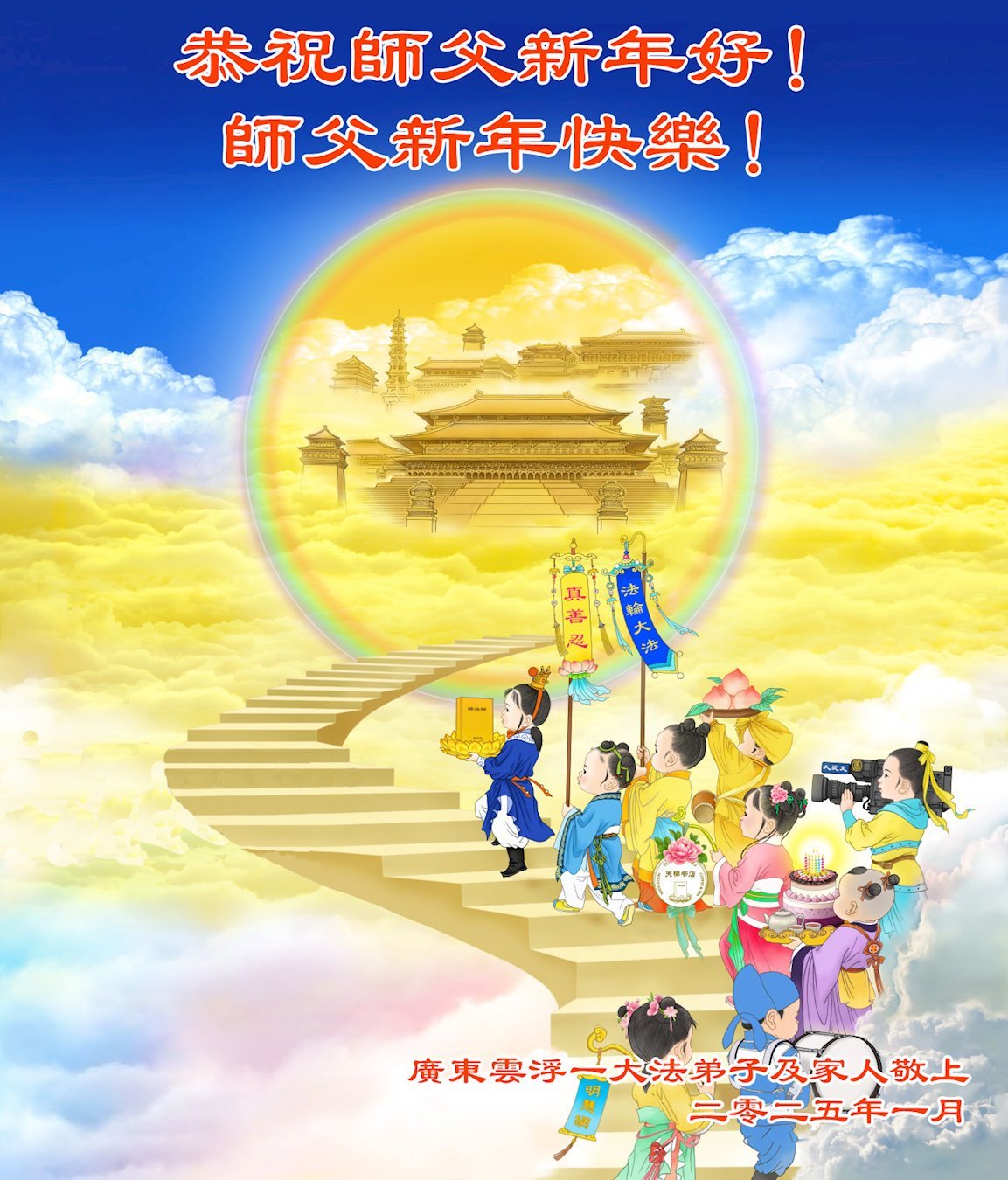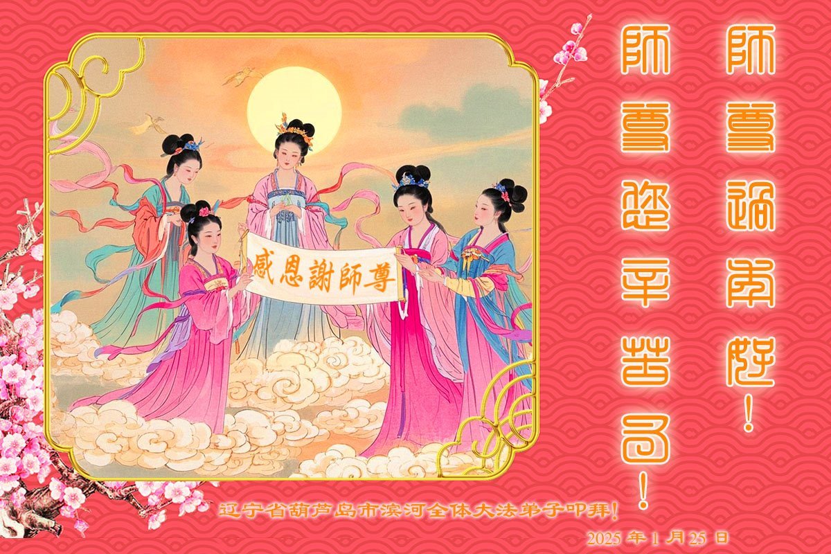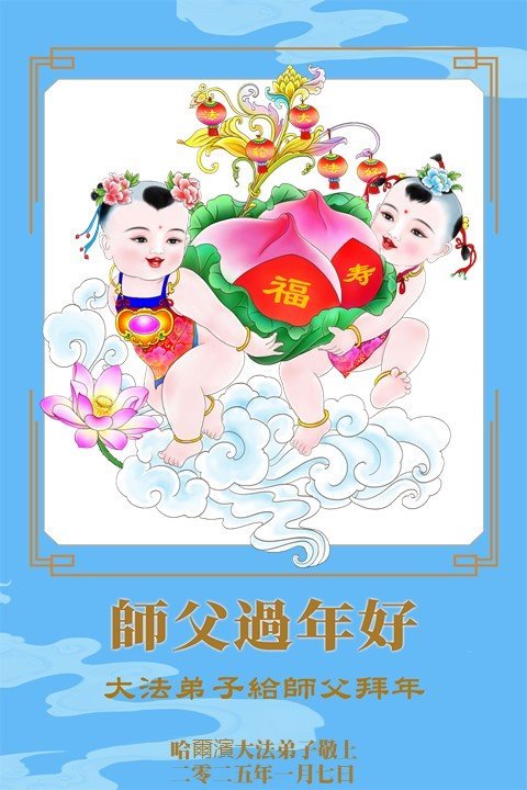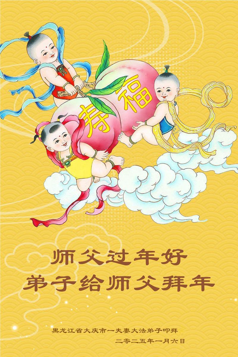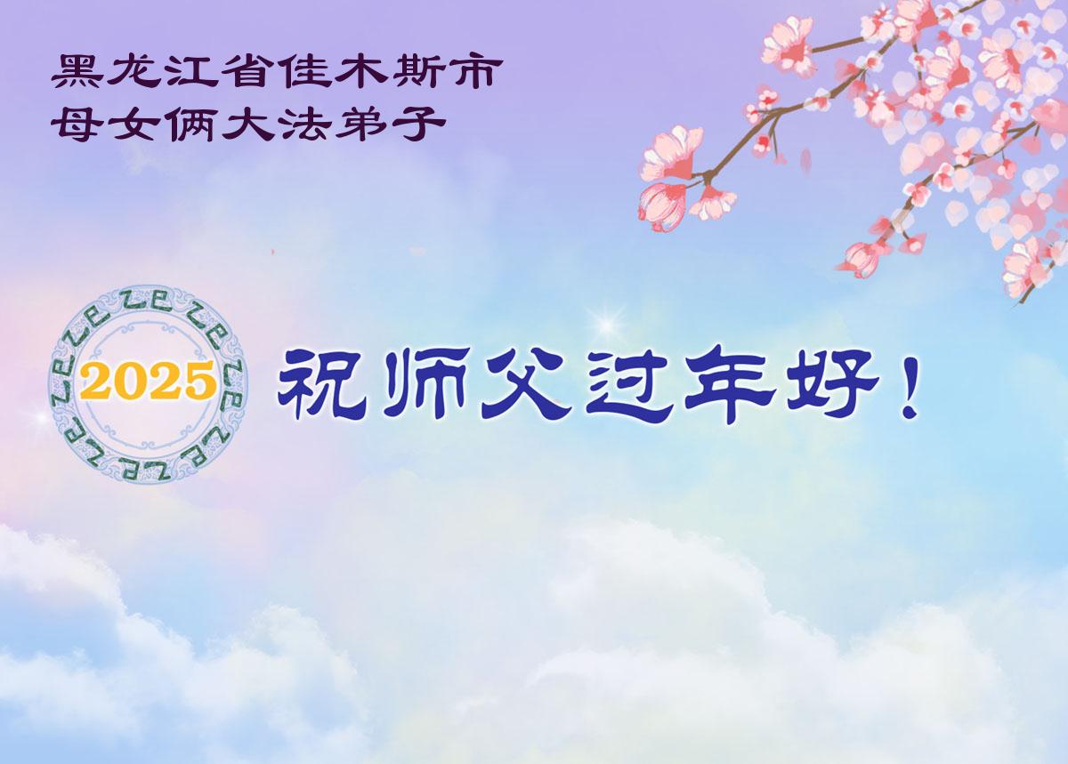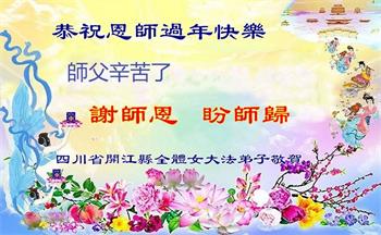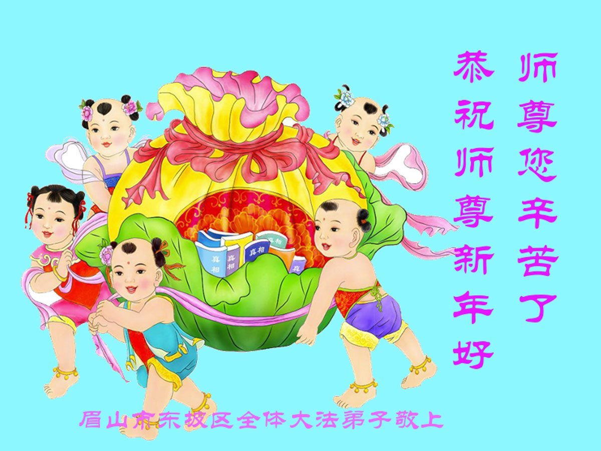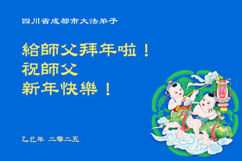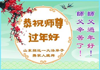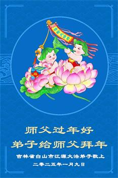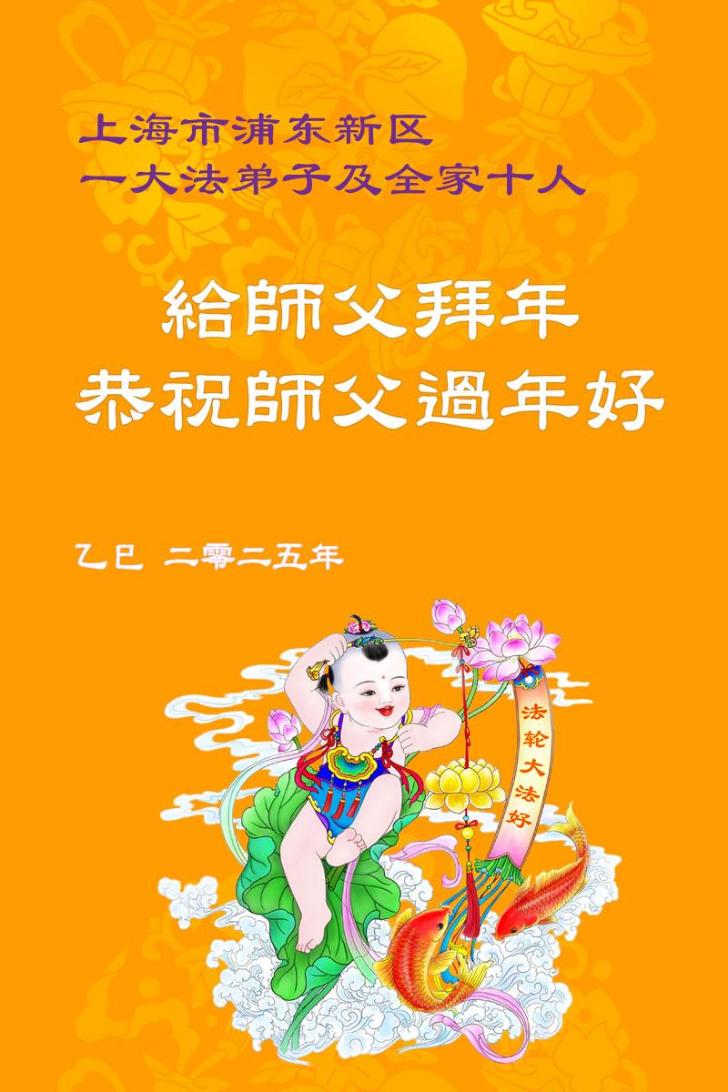 感恩师父的慈悲救度!感恩师父将我们从地狱中捞出洗净,引领我们走上一条返本归真之路。在新年到来之际,我们全家大法弟子及新学员(共6人)给慈悲伟大的师尊拜年:师父过年好!师父您辛苦了!