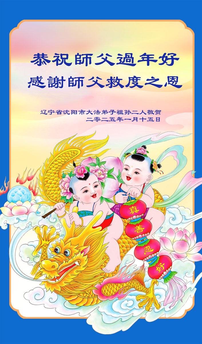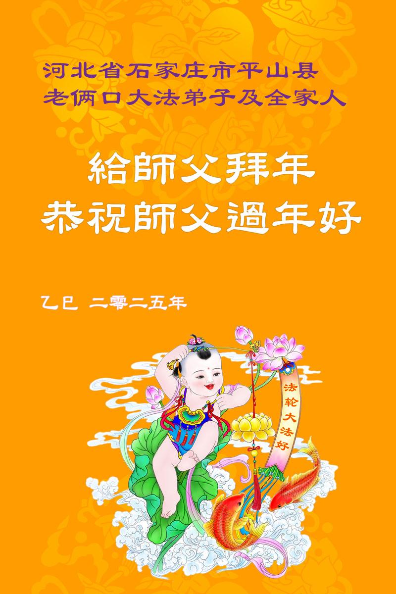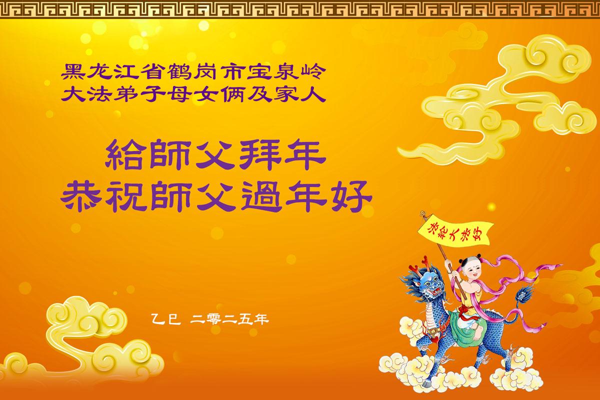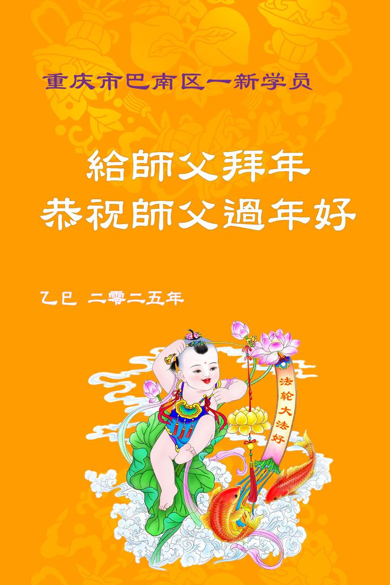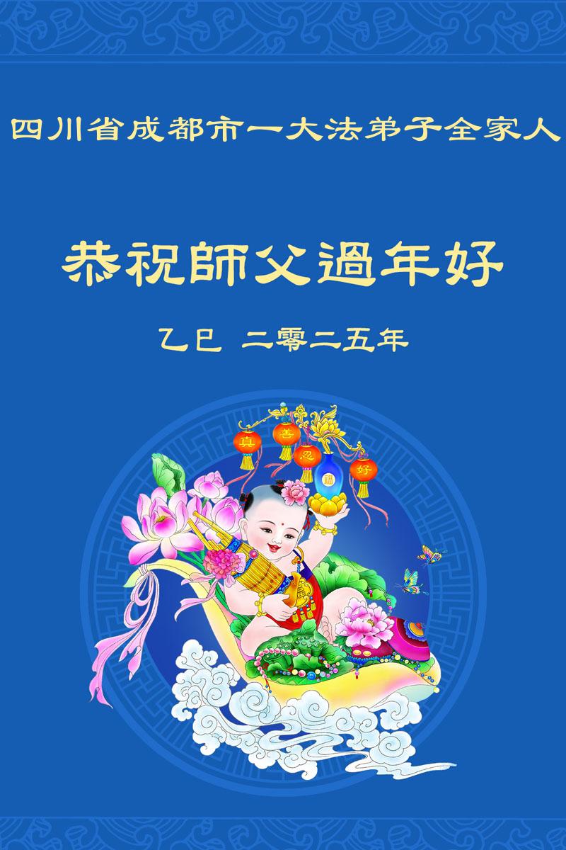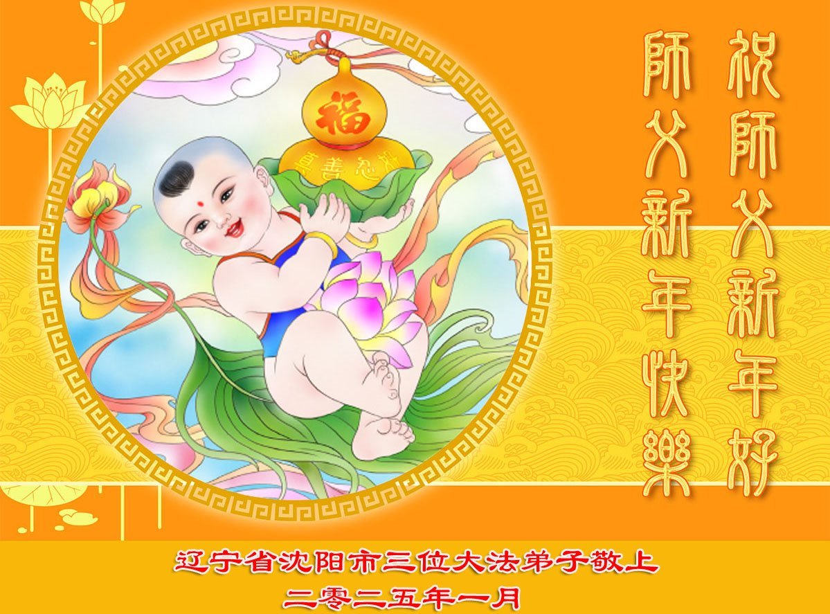 感恩师父的慈悲救度!感恩师父将我们从地狱中捞出洗净,引领我们走上一条返本归真之路。在新年到来之际,我们全家大法弟子及新学员(共6人)给慈悲伟大的师尊拜年:师父过年好!师父您辛苦了!