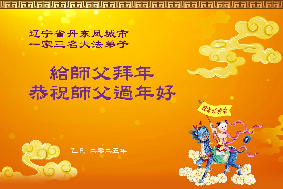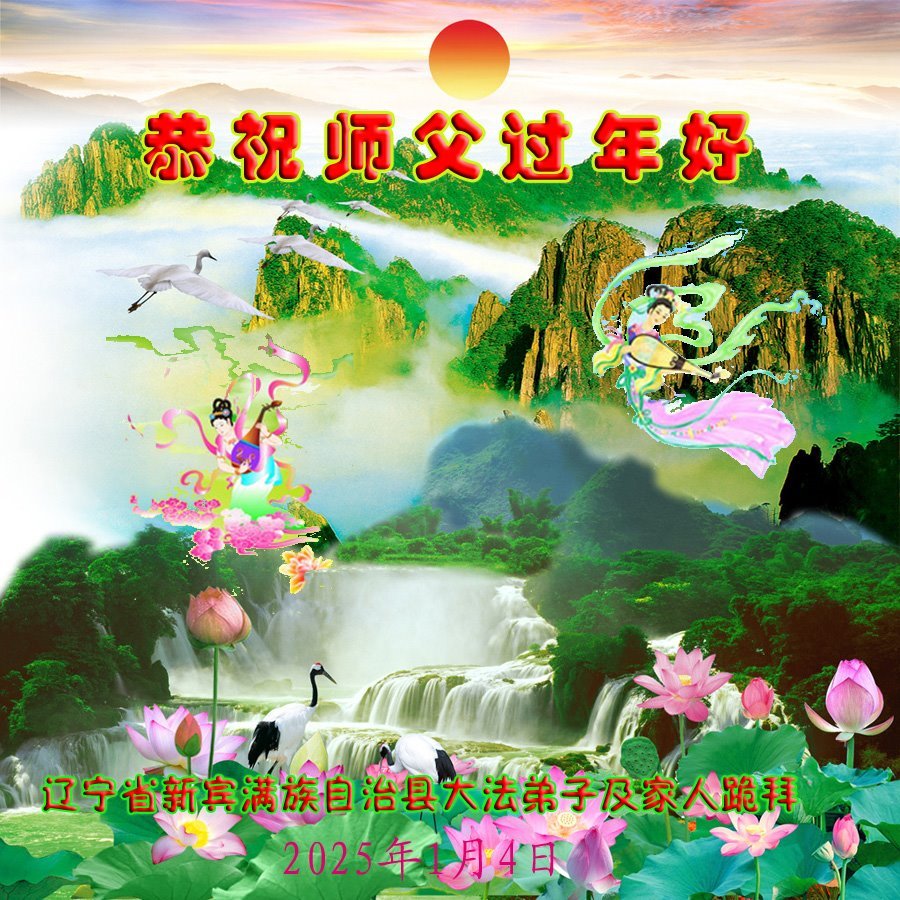 我是辽宁省凌源市农民,也是一名新学员,我带领我全家人给师父送上新年祝福,恭祝慈悲伟大的师父新年快乐!