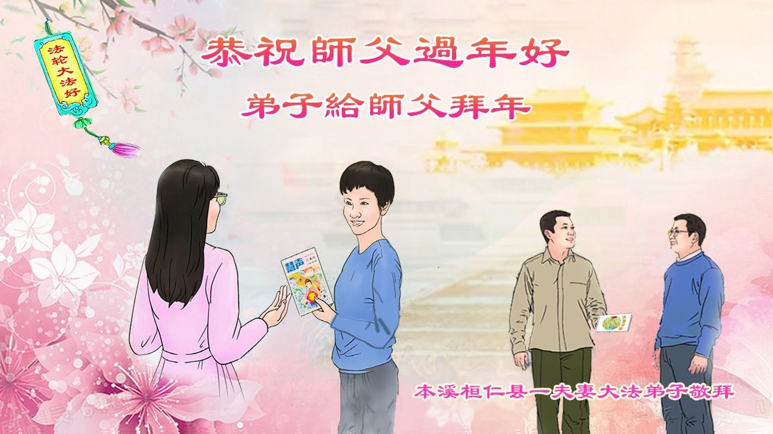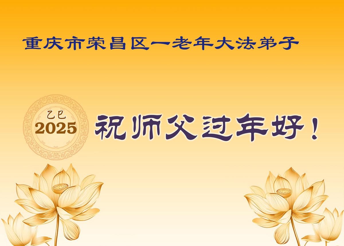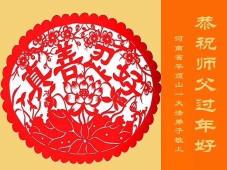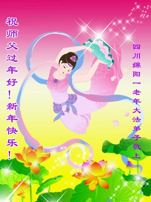 我今年八十四岁,是得法四年的新学员。我身上几种难治的病都好了。我这么大岁数了,师父为我清理身体、祛病,我真心感谢师父救命之恩!我们全家人祝师父过年好!