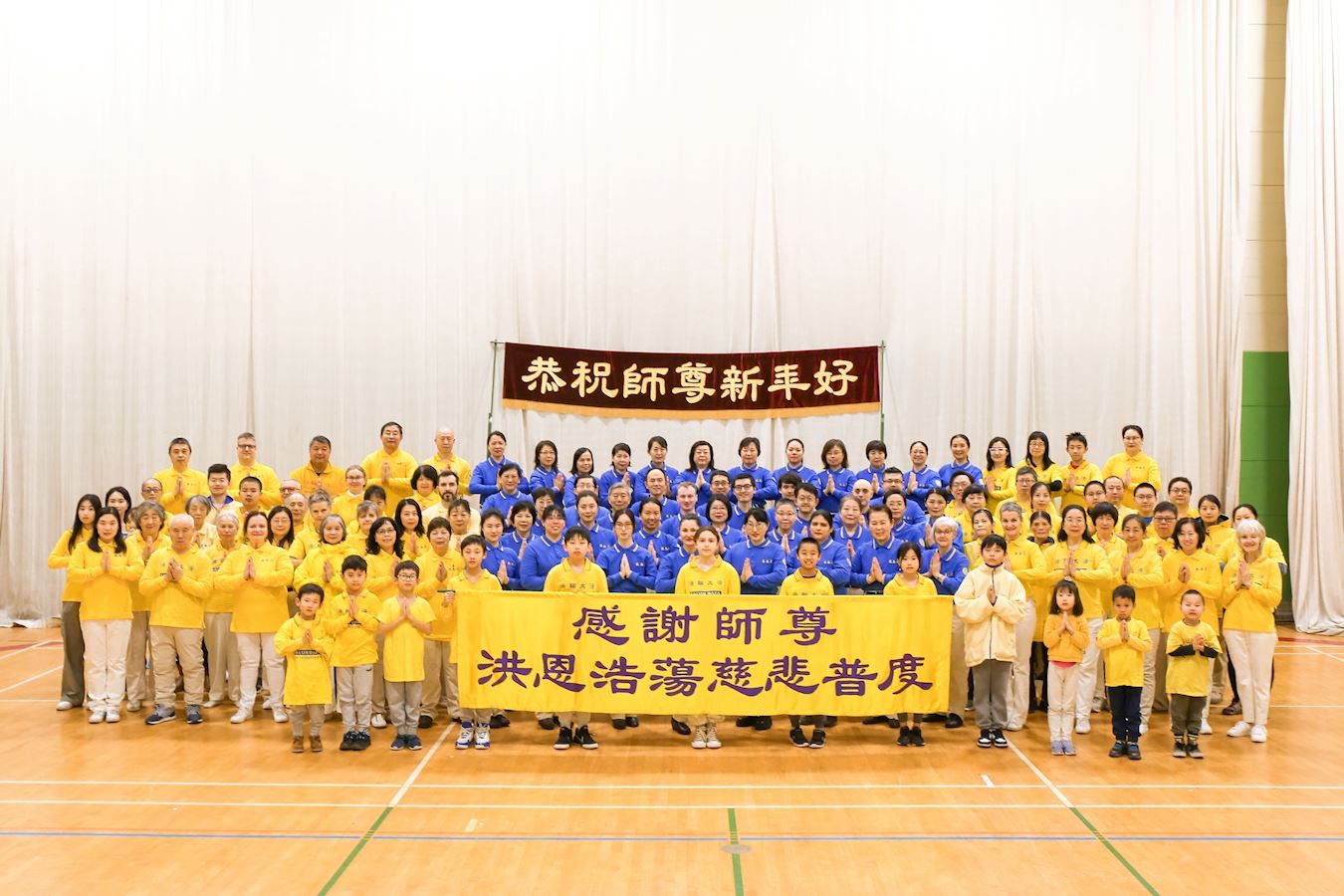 ![]() 图3:蒙特利尔天国乐团成员向师父拜年。 |