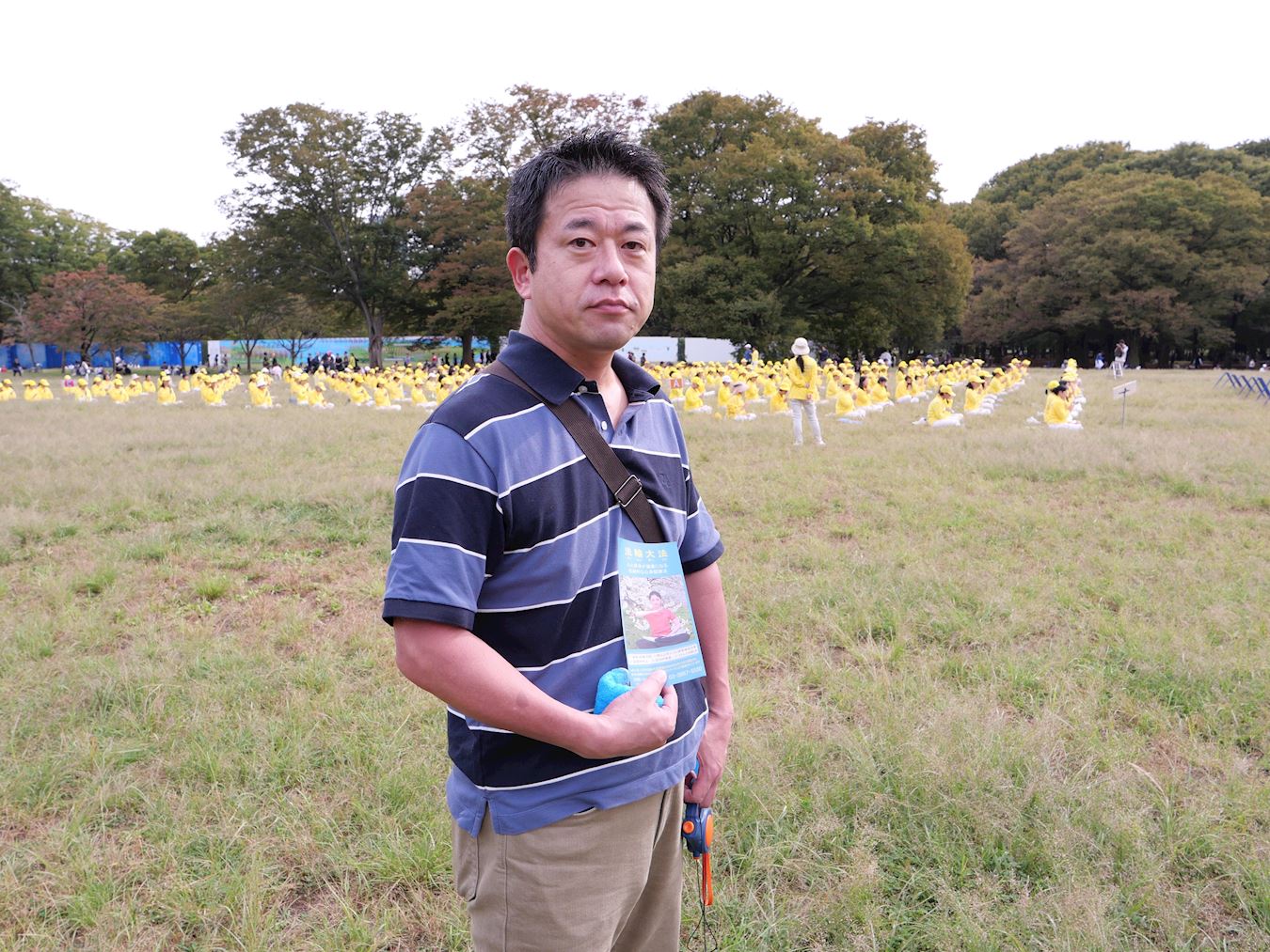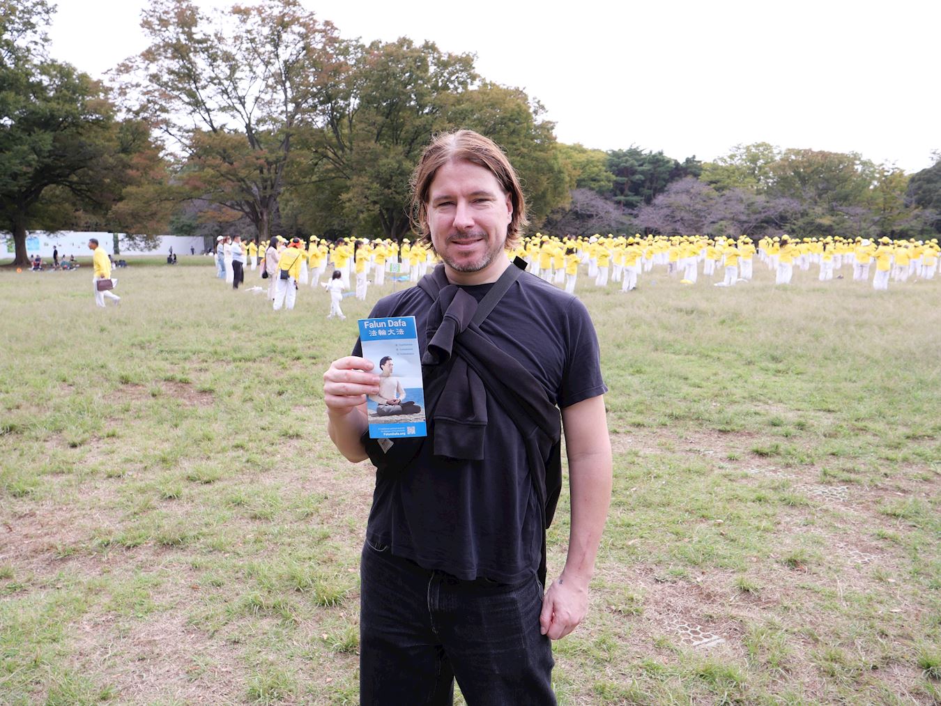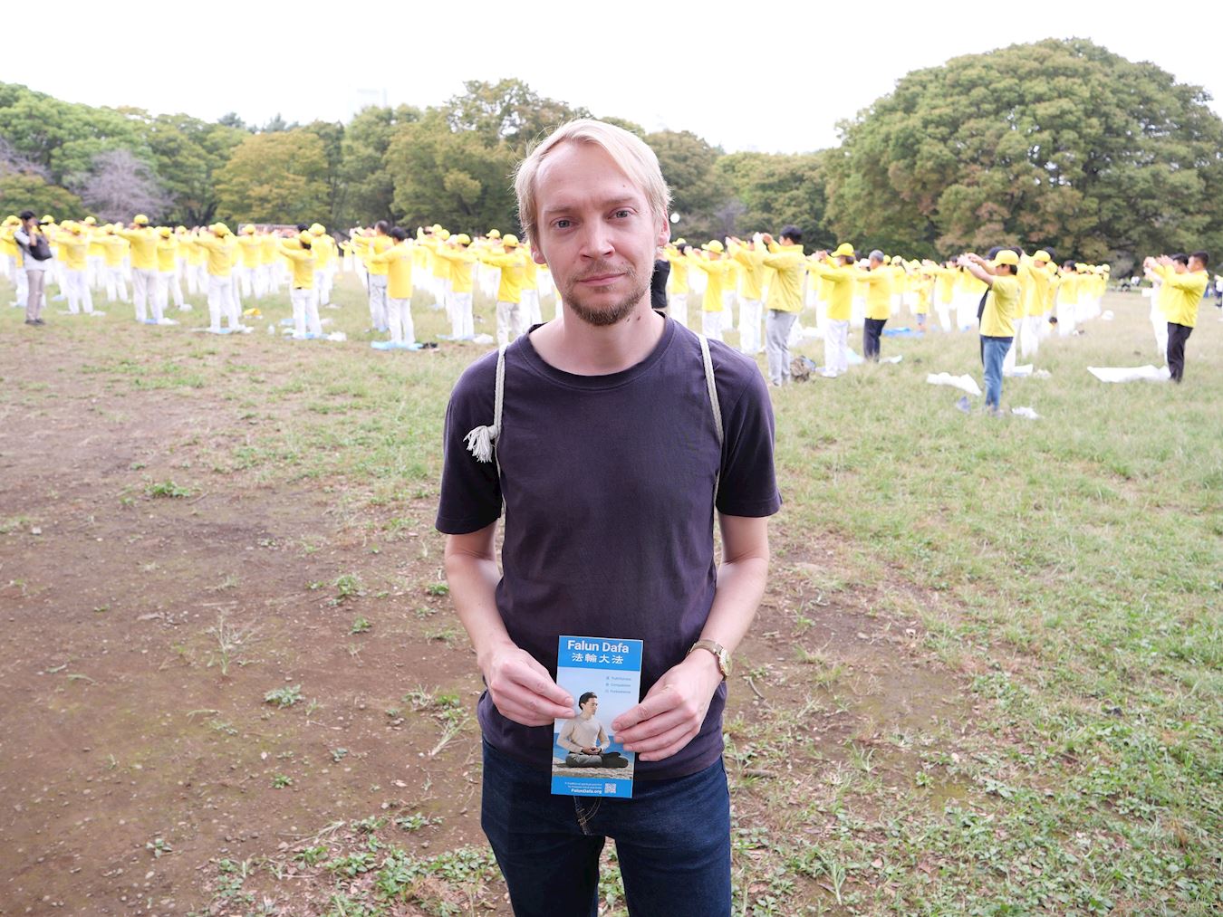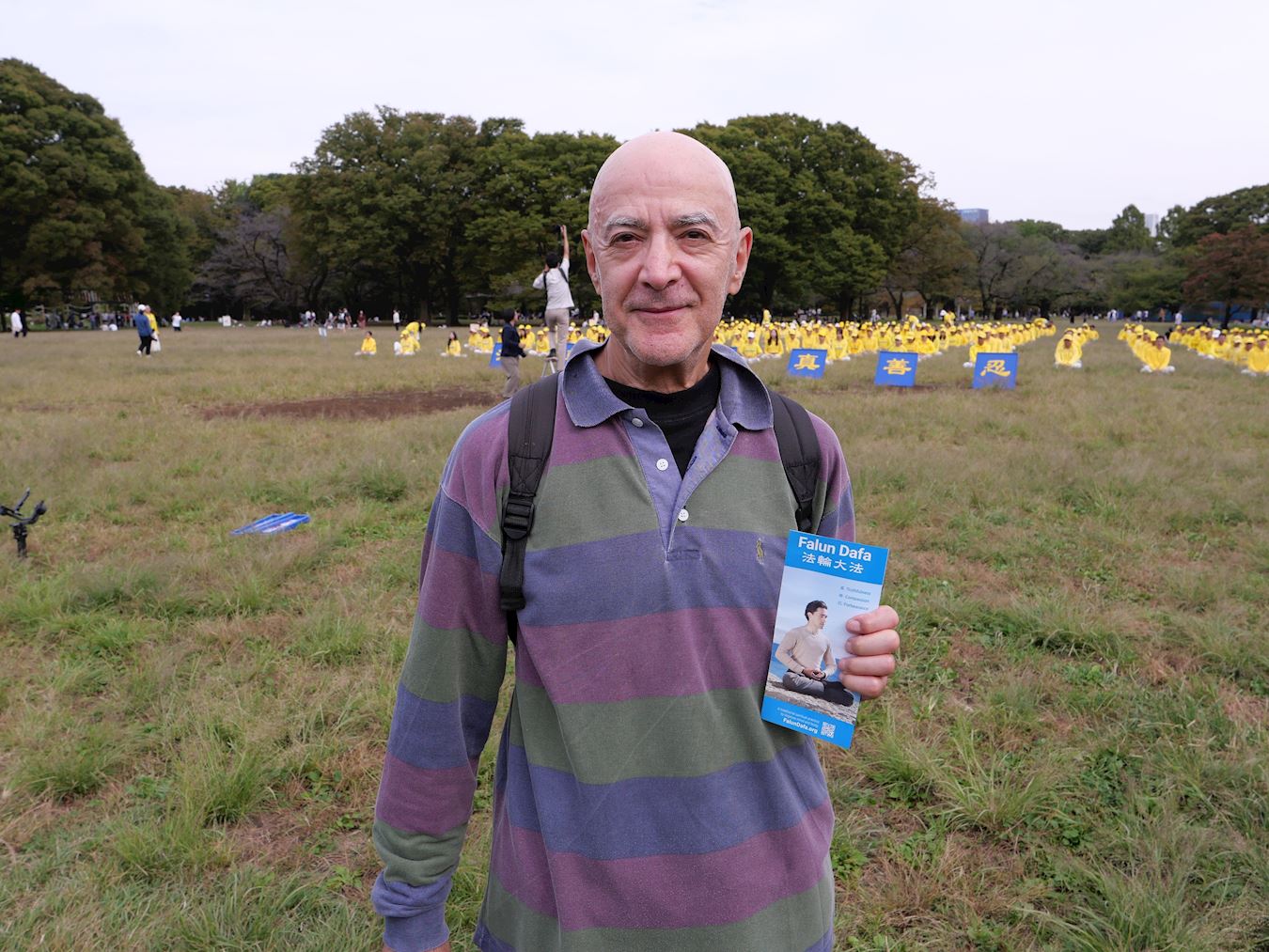 英国人安东尼·德米特里斯(Anthony Demetris)先生在代代木公园偶然看到大炼功。他说:“我从伦敦来,我也是法轮功学员。看到日本的法轮功学员很感动。日本有这么多学员,(炼功活动)组织得井井有条,非常鼓舞人心。”