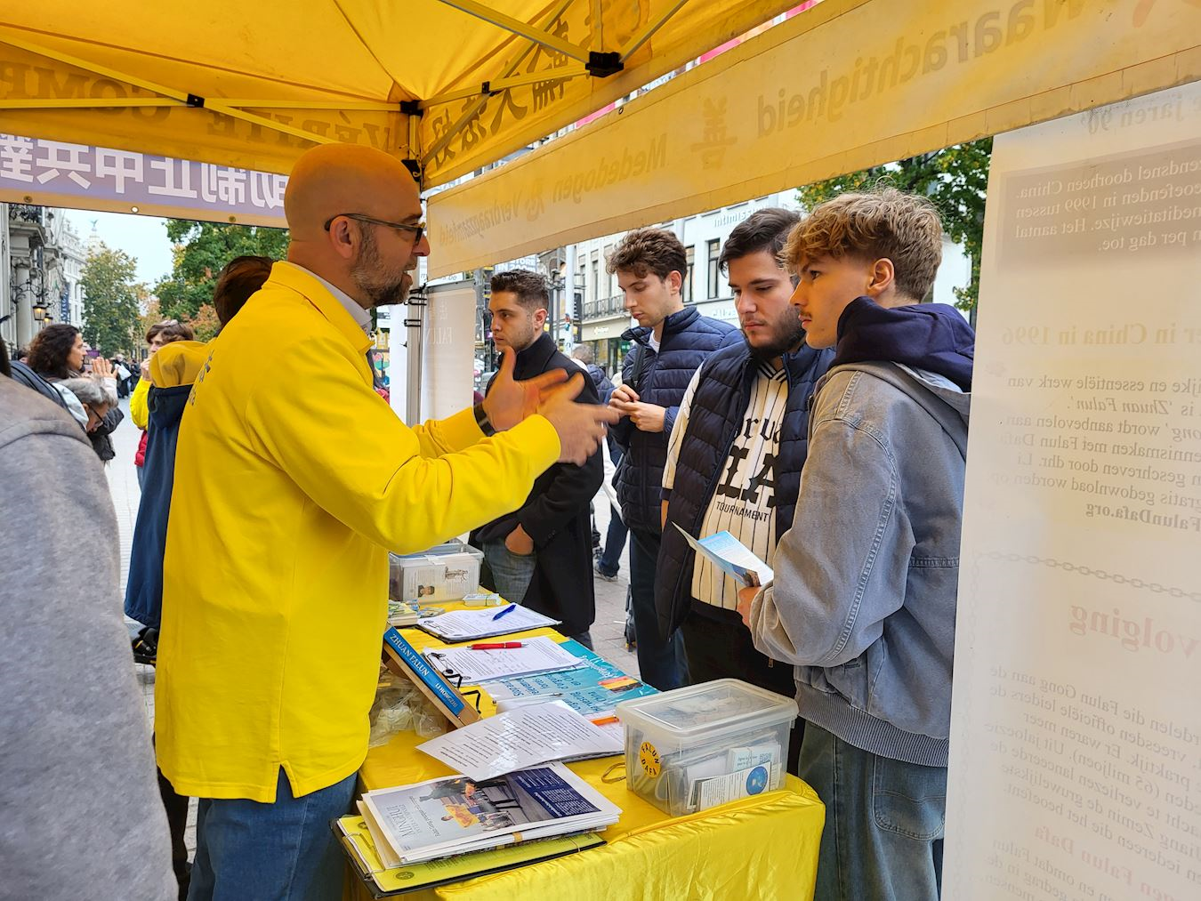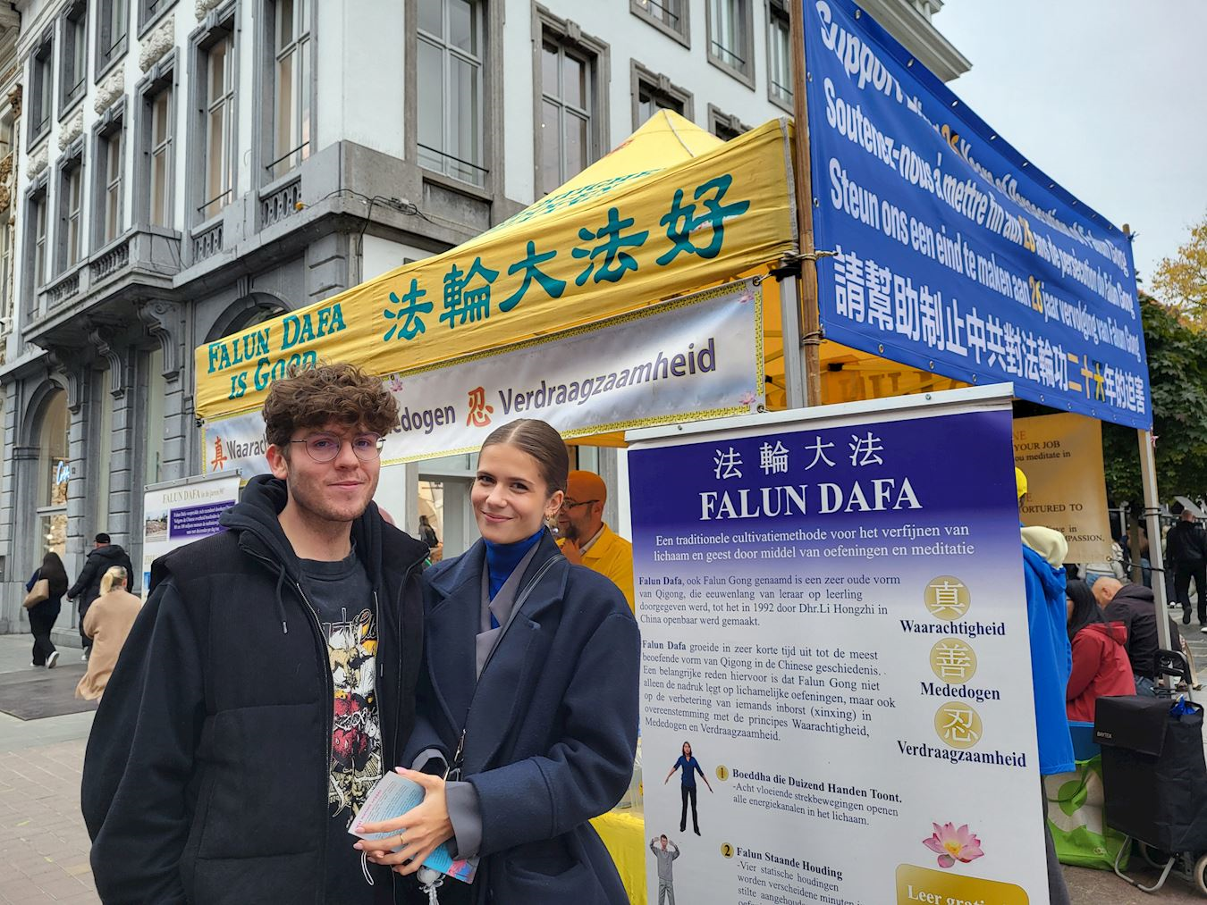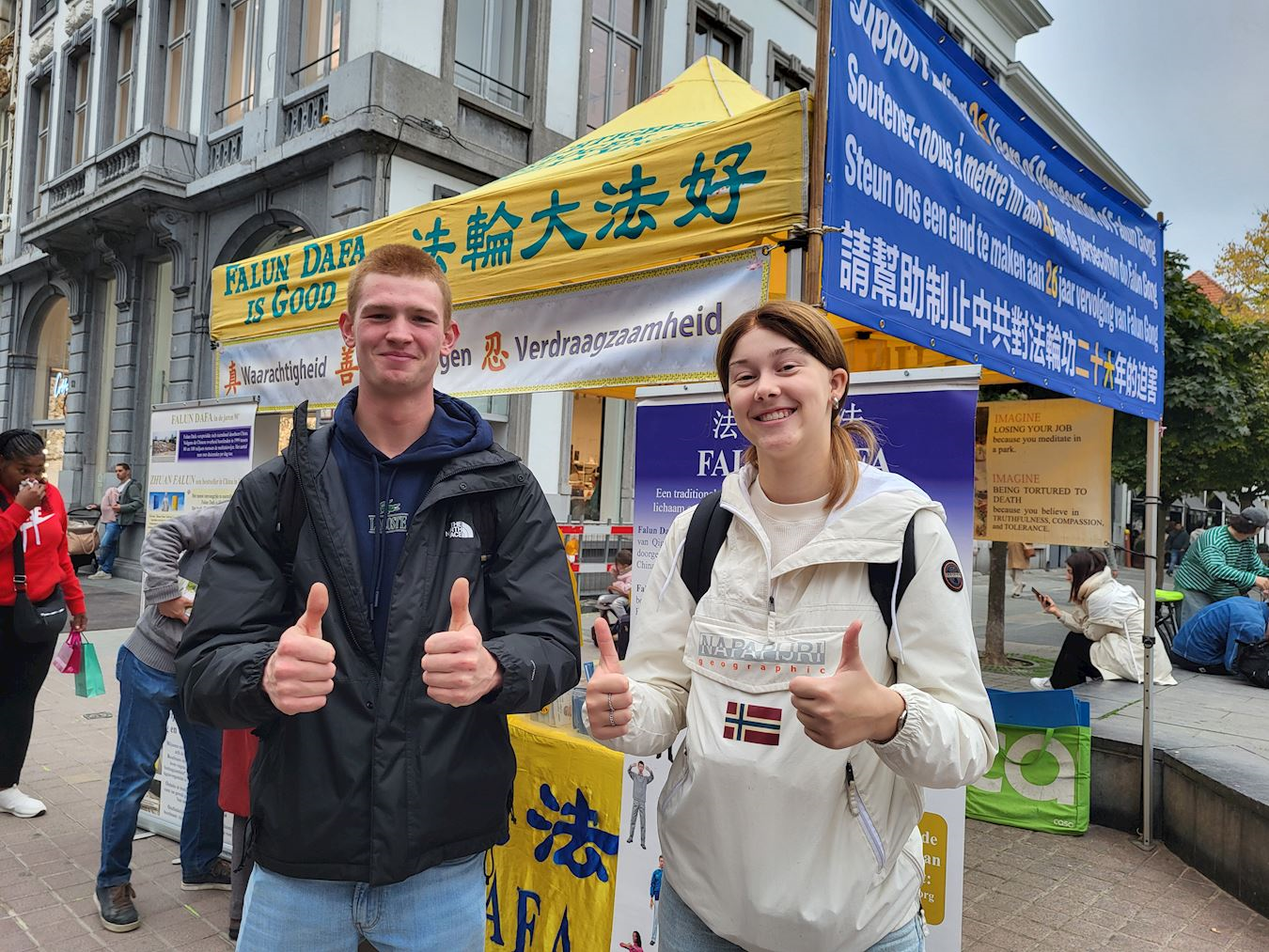 瓦雷(Warre)和埃姆斯克(Emske),两人就读于安特卫普的一所高等院校。他们与学员交谈了很久,他们说:“我们真的不知道发生了这样迫害的事。 ”瓦雷说,“这是我们第一次听说,感觉很震惊。尤其是这个群体人数庞大,据说迫害初期有七千万到一亿人,却几乎没有人提及,太不可思议了。 ”