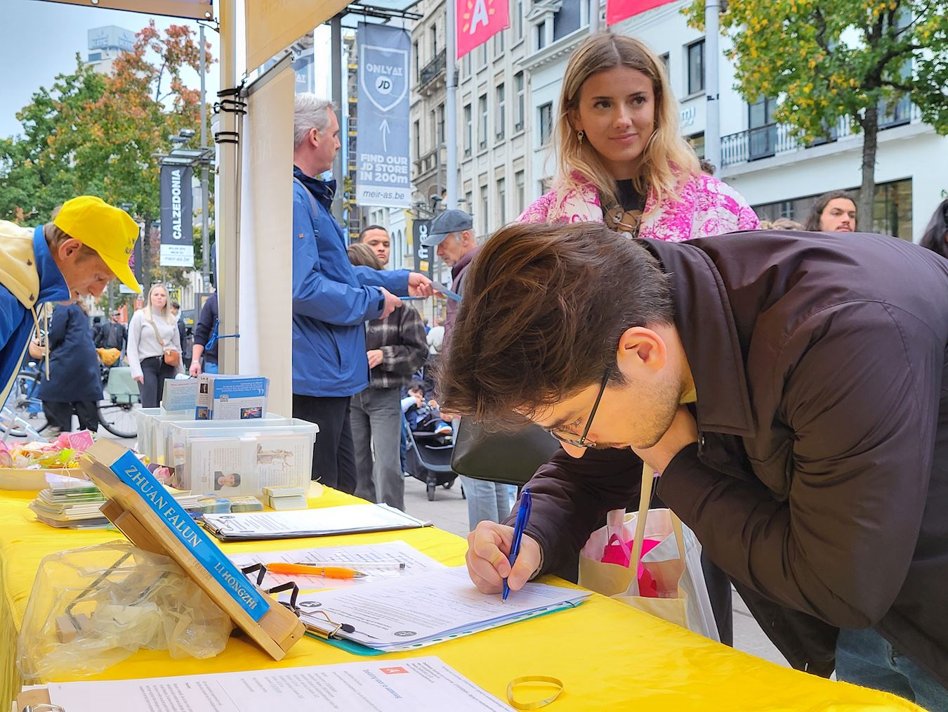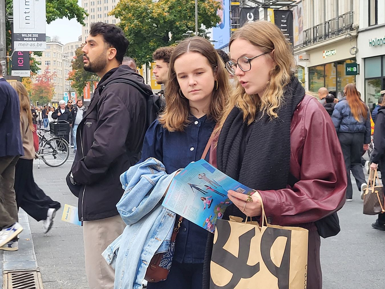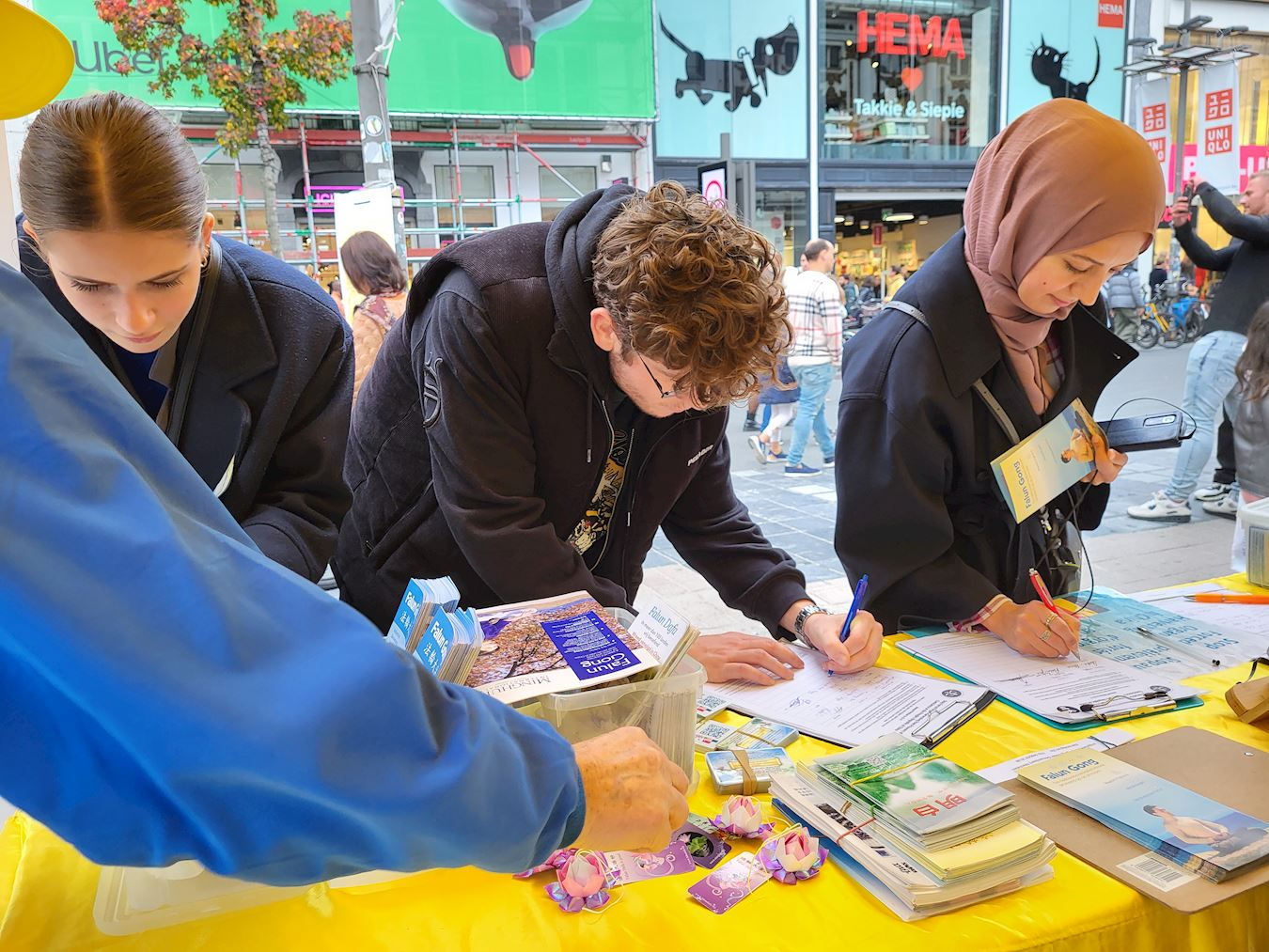 瓦雷(Warre)和埃姆斯克(Emske),两人就读于安特卫普的一所高等院校。他们与学员交谈了很久,他们说:“我们真的不知道发生了这样迫害的事。 ”瓦雷说,“这是我们第一次听说,感觉很震惊。尤其是这个群体人数庞大,据说迫害初期有七千万到一亿人,却几乎没有人提及,太不可思议了。 ”
