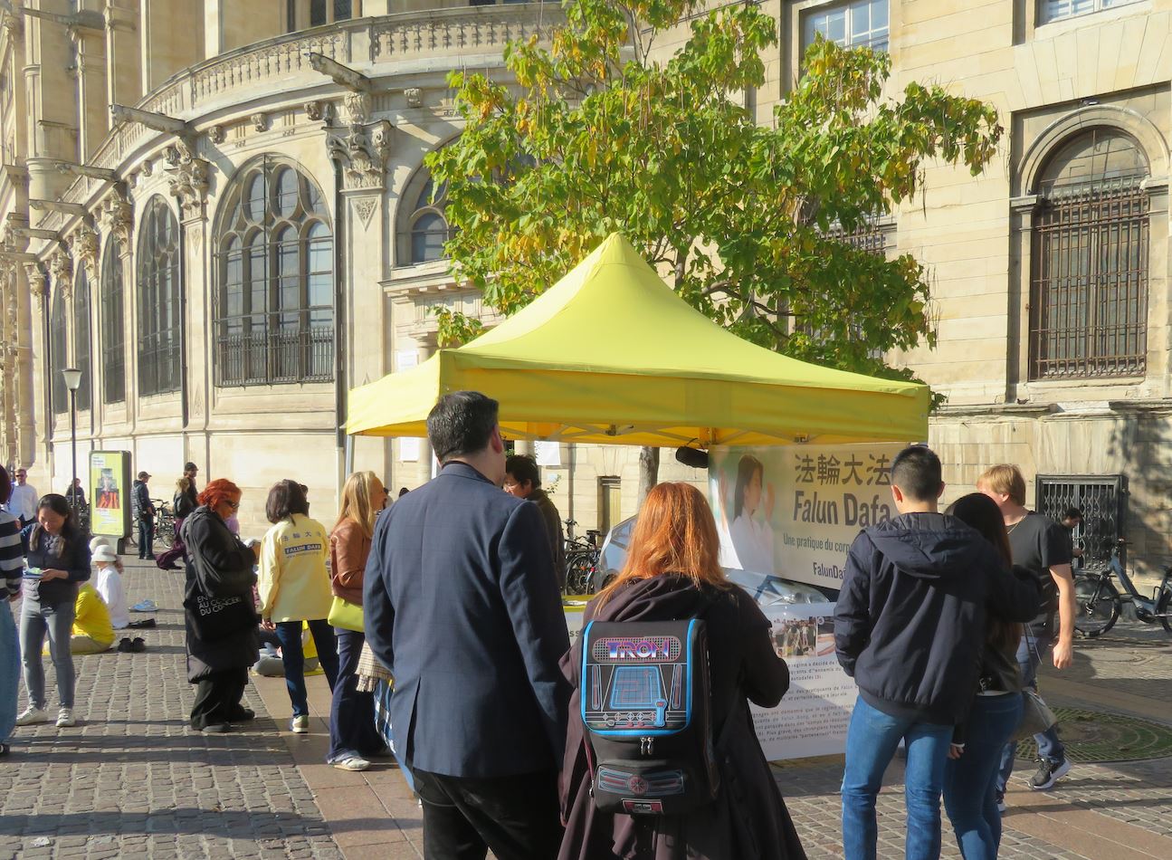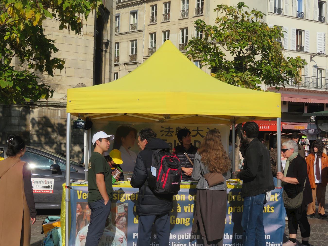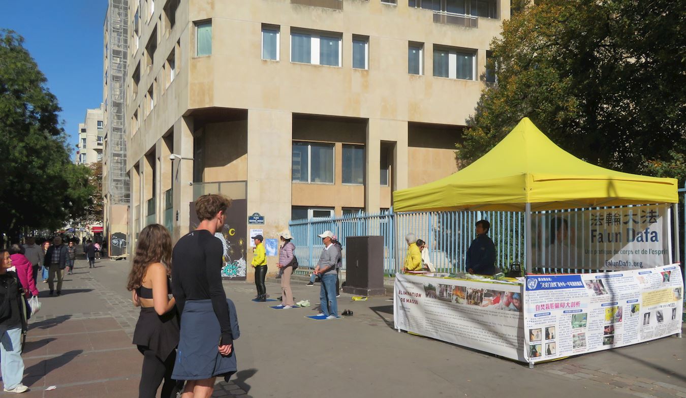 十月七日,法轮功学员在巴黎美丽城进行了弘法和讲真相的活动。这里华人和中国人聚集,这天正好有集市,很多人前来了解真相,并想要学炼法轮功,索要巴黎炼功点的地址。