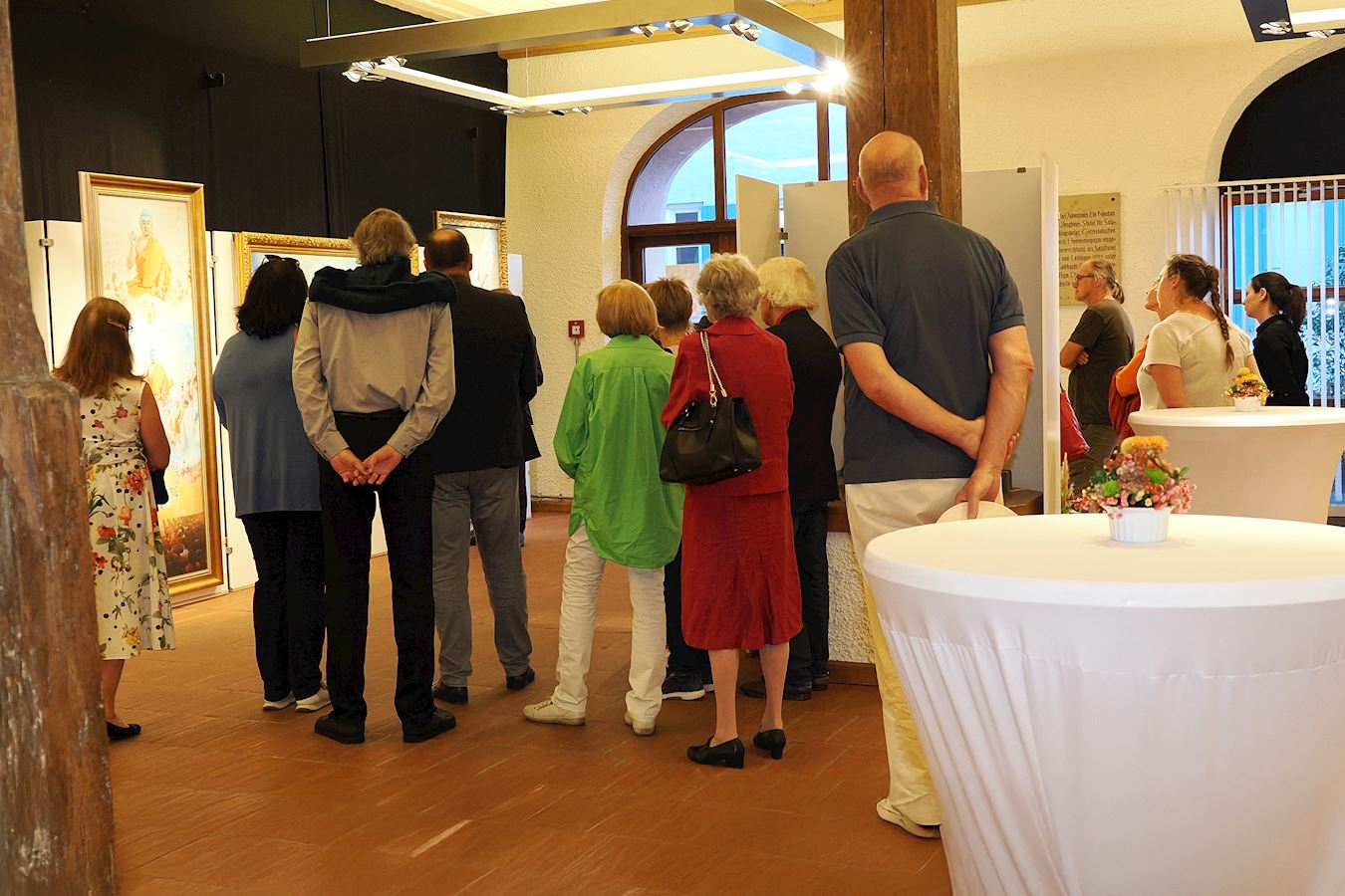 图1~4:二零二五年九月十九日在德国多瑙沃特的军械馆举办“真善忍美展”的开幕酒会上,现场宾客众多,吸引了很多参观者。