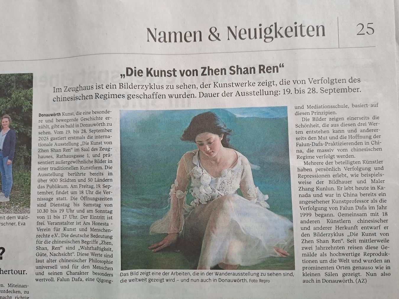 图6:“真善忍美展”开幕前当地媒体《多瑙沃特报》(Donauwörther Zeitung)提前以整版报道介绍了此次展览。
