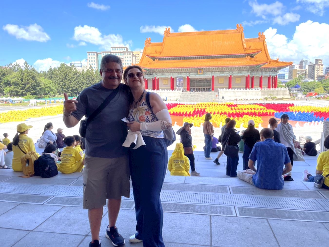 来自墨西哥的夫妇拉蒙(Ramon)、阿玛利亚(Amalia),表示非常开心看到今天的排字活动,夫妻俩对于东方的修炼文化很有兴趣,了解学员透过打坐炼功,修养心性,不同于西方的医学疗效,所以觉得法轮大法很好,也想要加入,希望回到墨西哥能在网站上下载大法书,并且找到炼功点开始炼功。