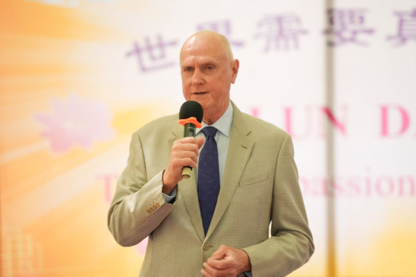 他提醒观众,法轮大法的理念真、善、忍是跨越文化的普世价值。遵循这些原理已使全球数百万民众受益,并持续通过促进和平、慈爱与坚韧来丰富社区生活。