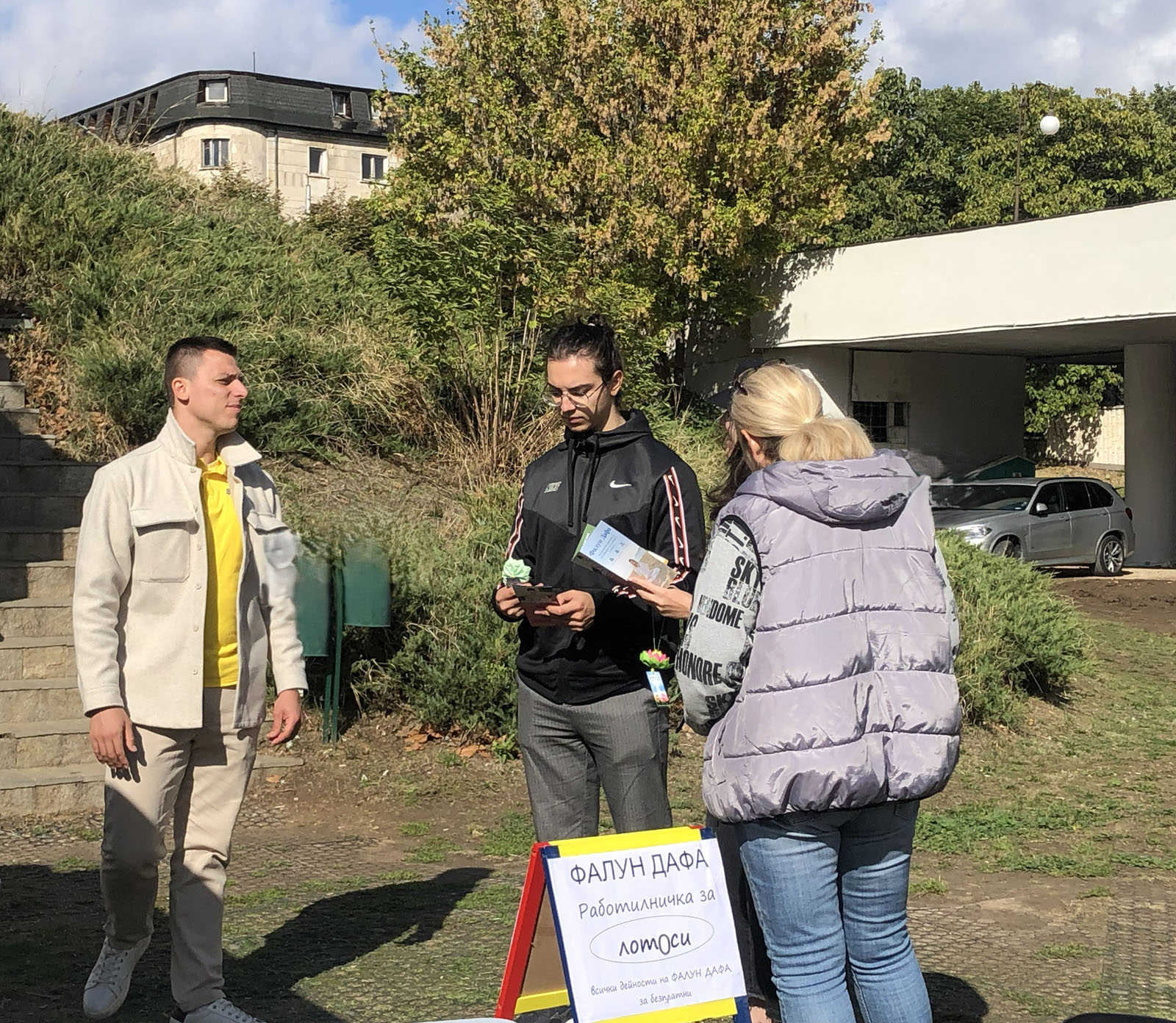 两天活动期间,访客络绎不绝。在一张小桌上,摆放着保加利亚文的法轮大法书籍——《转法轮》和《法轮功》以及其他真相资料。功法演示引起了健康节参观者的浓厚兴趣。有些人想学炼功法,当地法轮功学员告诉他们炼功点的地点。
