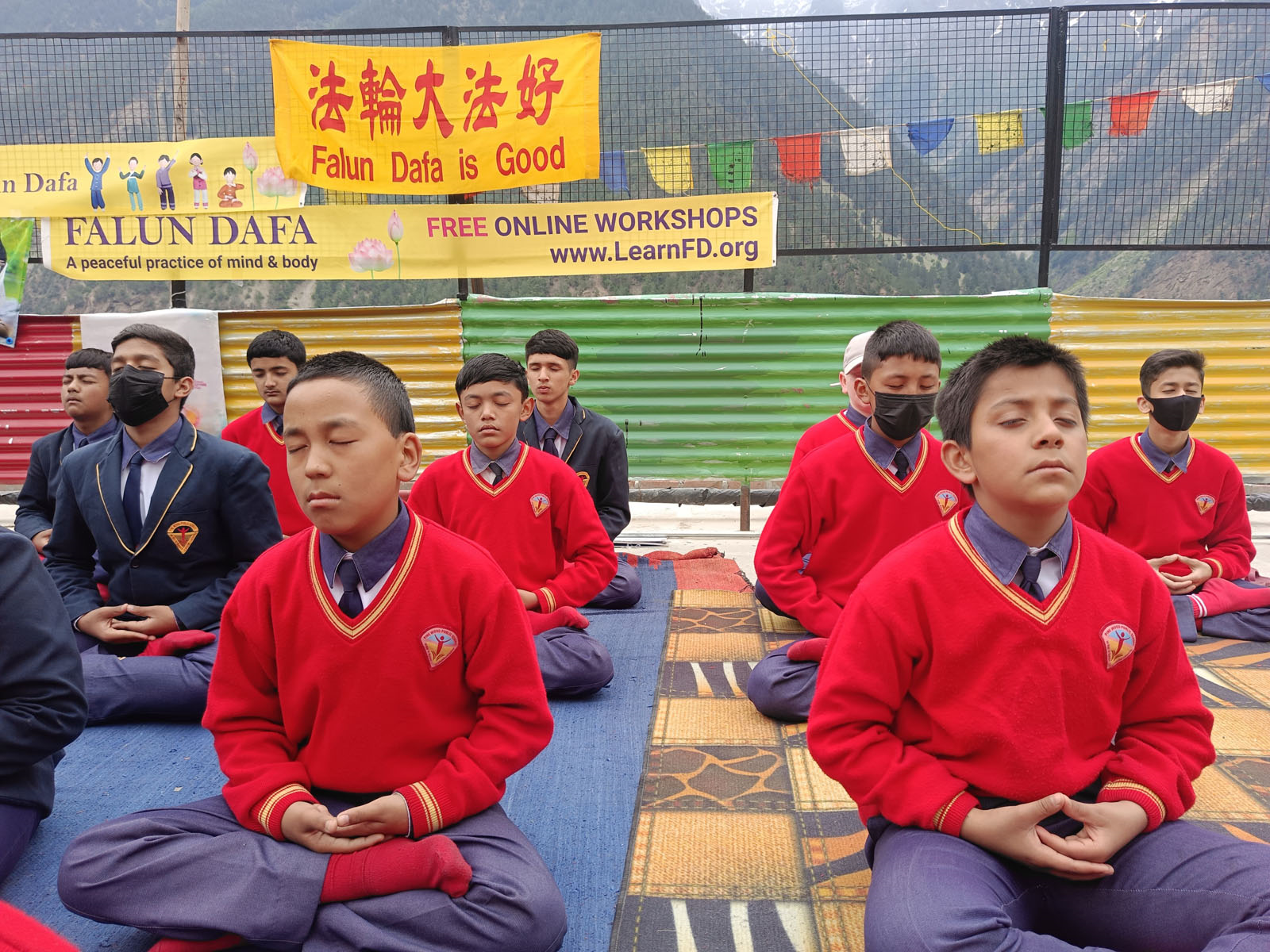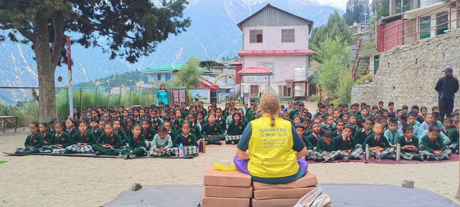 图1~12:法轮功学员走访了西喜马拉雅地区的十三所学校,向师生介绍法轮功并免费教授功法