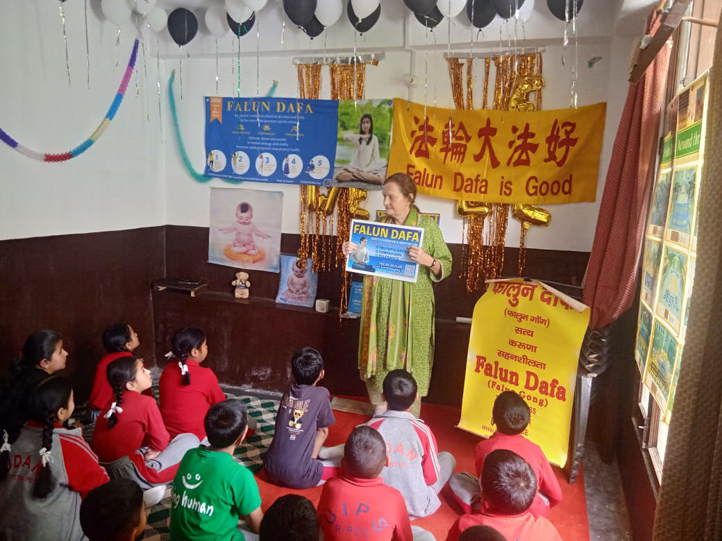 这位法轮功学员联系了当地的学校和社区组织,举办弘法活动。她带去了书籍、杂志、传单、书签、海报等介绍法轮大法、讲述中共在中国迫害法轮功的真相资料。在这次行程中,法轮功学员在十三所学校和一个儿童拳击俱乐部办弘法班,并走访了瑞康佩奥(Reckong Peo)、桑格拉(Sangla)、尼查尔(Nichar)和蓬达(Ponda)等地区。