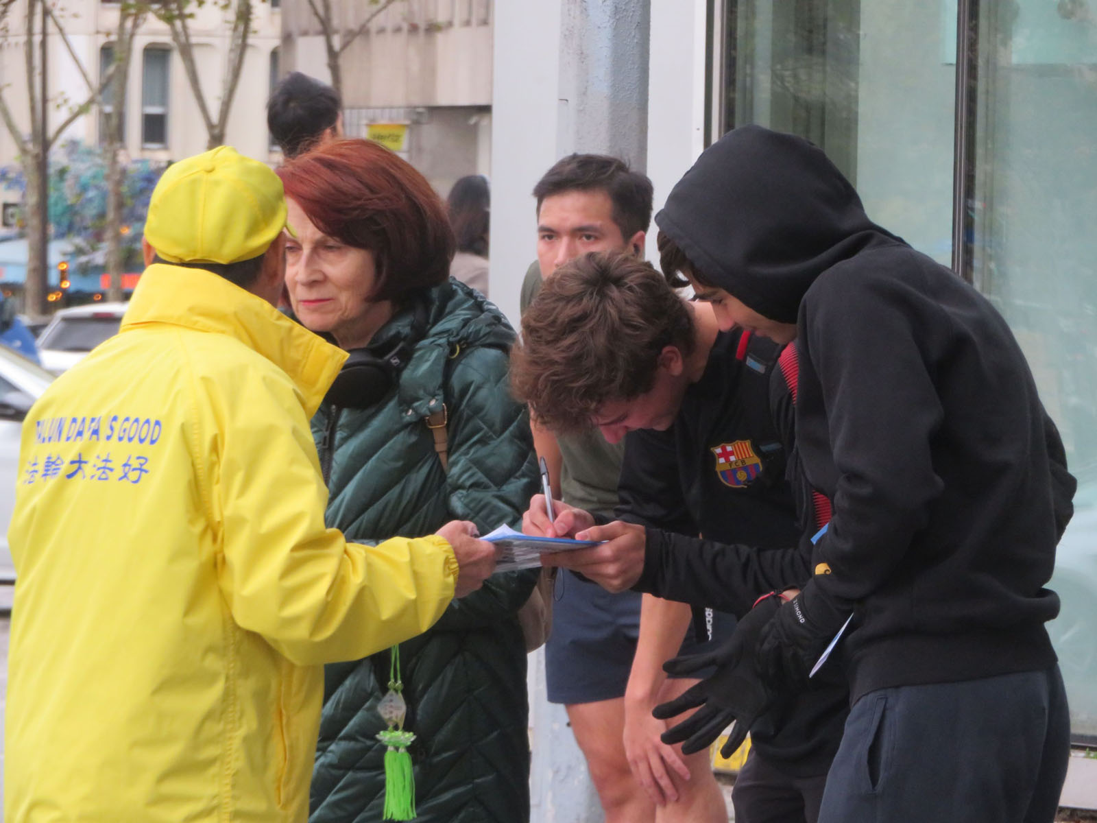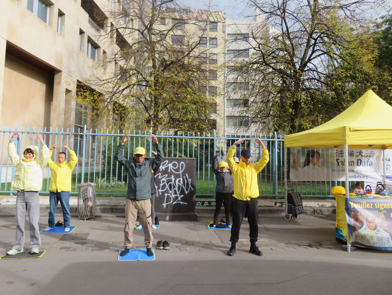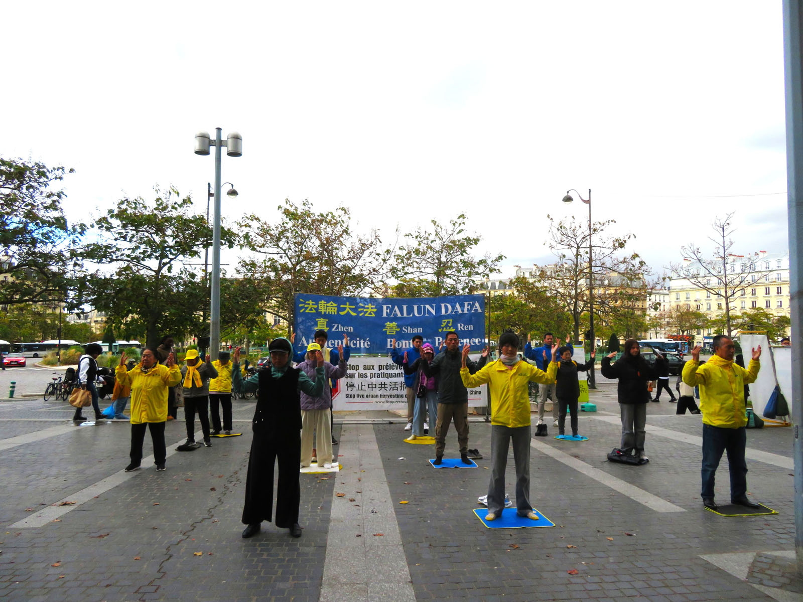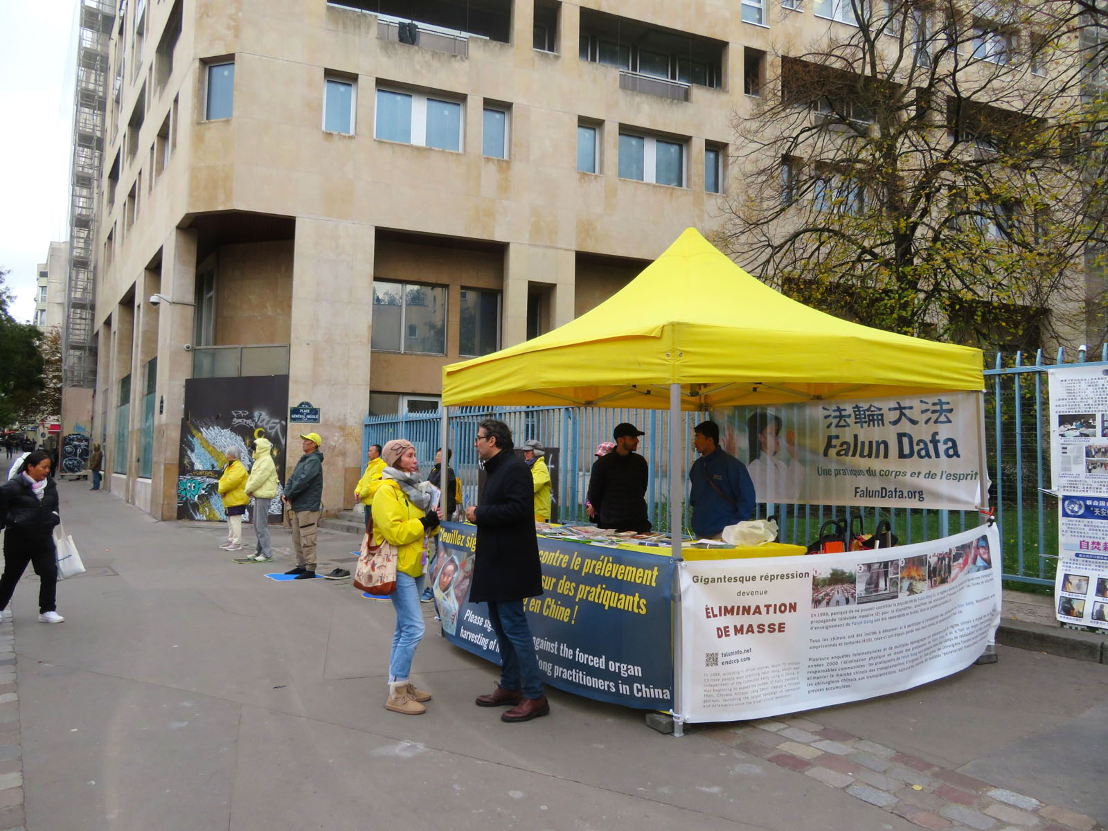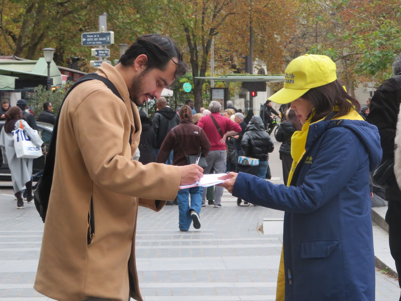意大利广场位于巴黎十三区,这里有大型的商业中心,广场的另一边是区政府。十月二十五日星期六,法轮功讲真相展位就在面向商业中心的场地上。熙熙攘攘的购物民众,看到了法轮功学员演示着法轮功五套功法,并获悉在中国修炼真、善、忍会受到中共迫害,甚至被活摘器官,他们感受到震惊和愤怒,纷纷在反迫害征签表上签名,并呼吁人们一起来制止中共迫害。