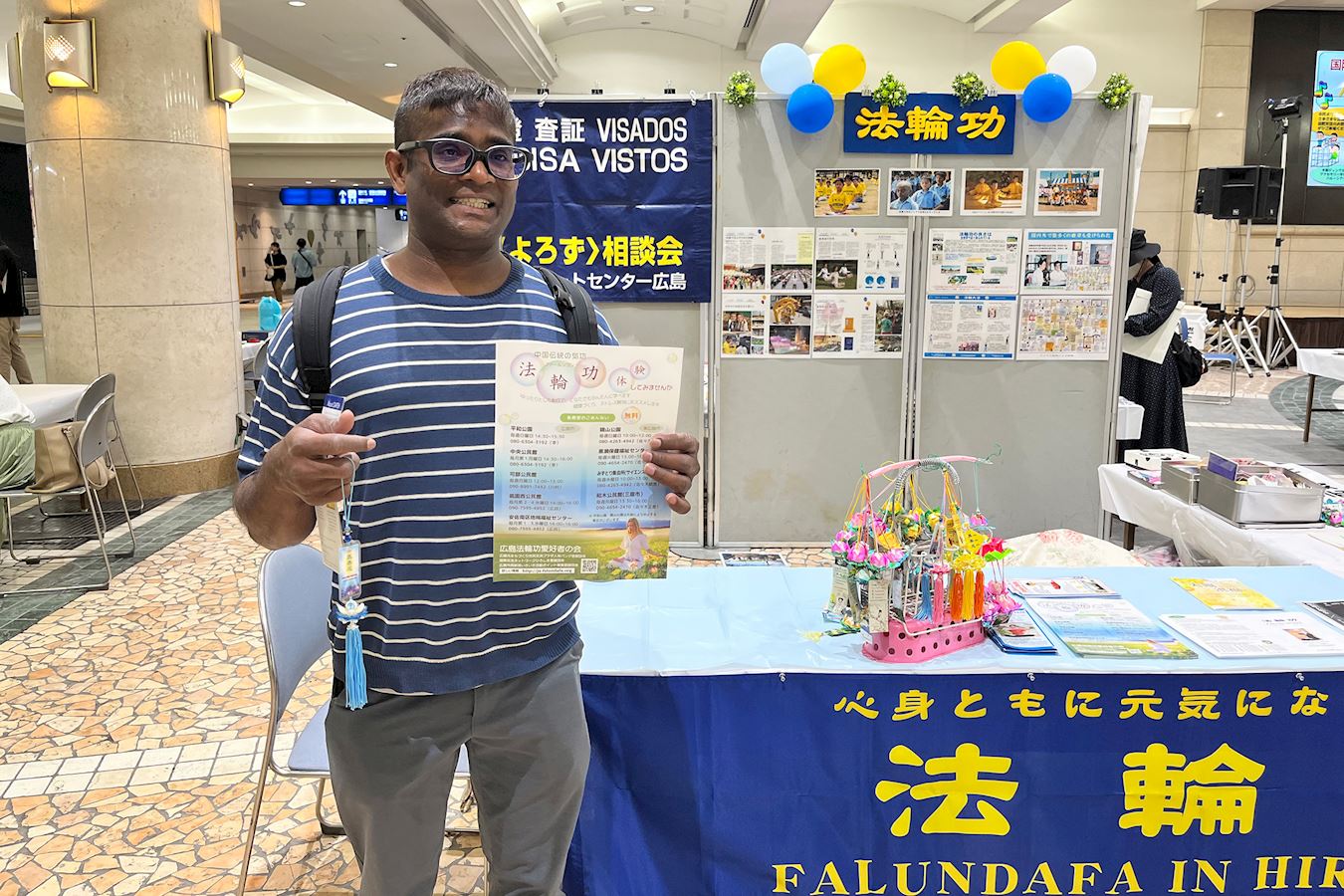 【明慧网二零二五年十月八日】二零二五年十月四日,日本广岛法轮功学员参加了在广岛站南口地下广场举办的“和平与爱”交流活动。活动中,法轮功学员以舞台表演、设置展位的形式向当地和世界各国不同族裔的人们介绍法轮功,有观众现场学功,也有人谴责中共对法轮功的迫害