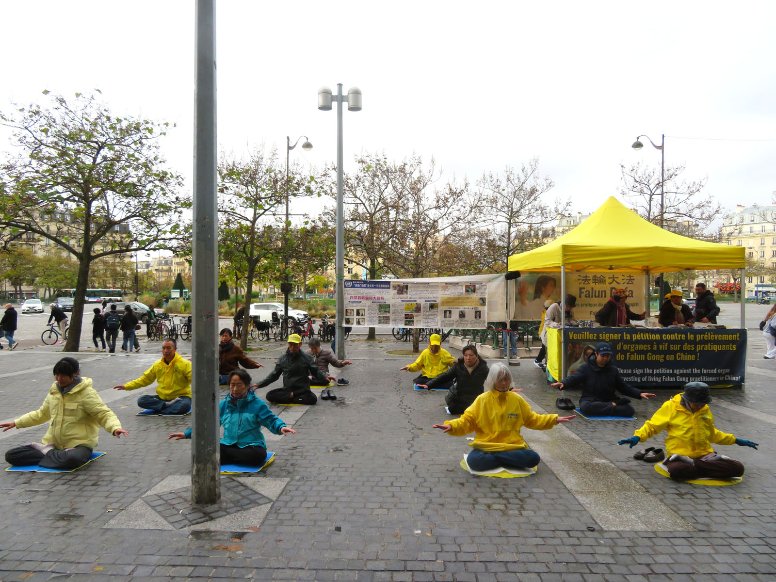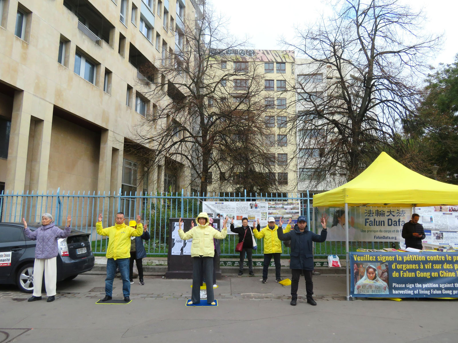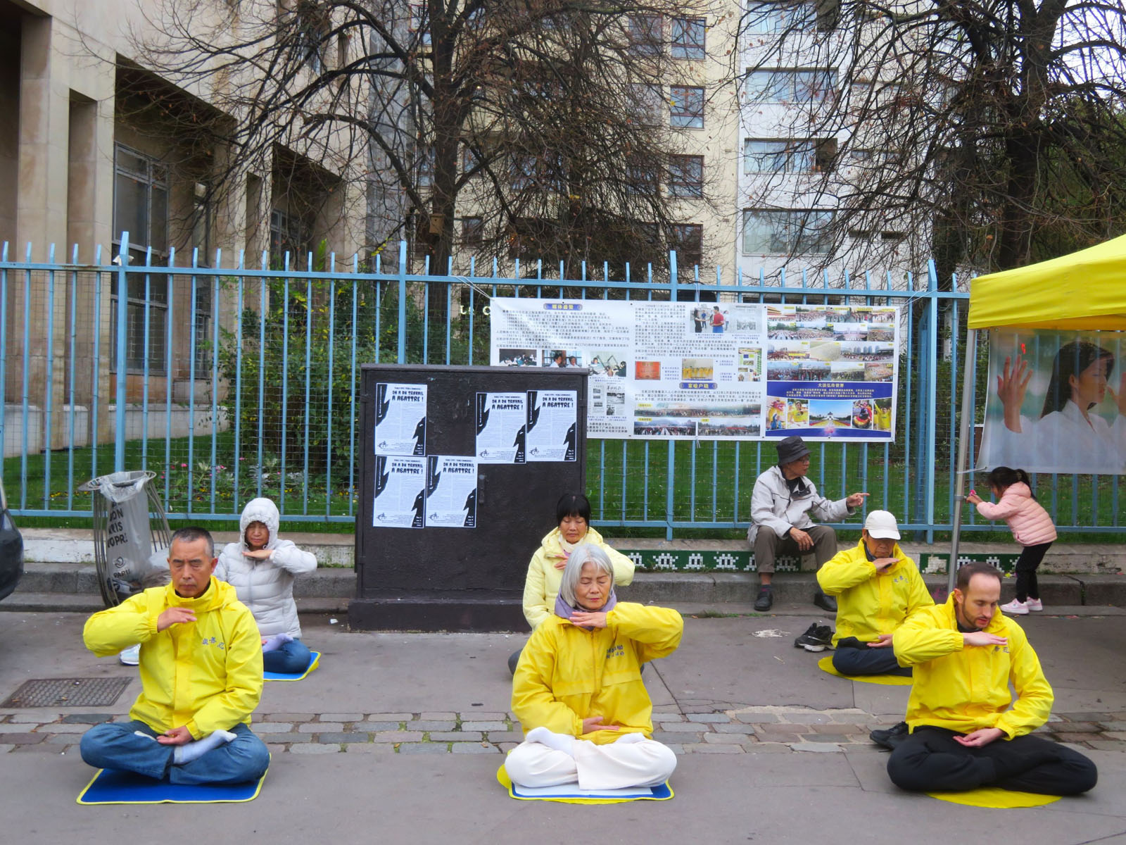 十一月十一日这天是公假日,法轮功学员再次来到巴黎美丽城,伴随着祥和的炼功音乐,他们展示法轮功五套功法,向过往民众讲述法轮功真相,仿佛给这个街区注入了新鲜的空气。人们主动在反迫害征签表上签字,多位华人在法轮功学员的帮助下退出了中共党、团、队组织。