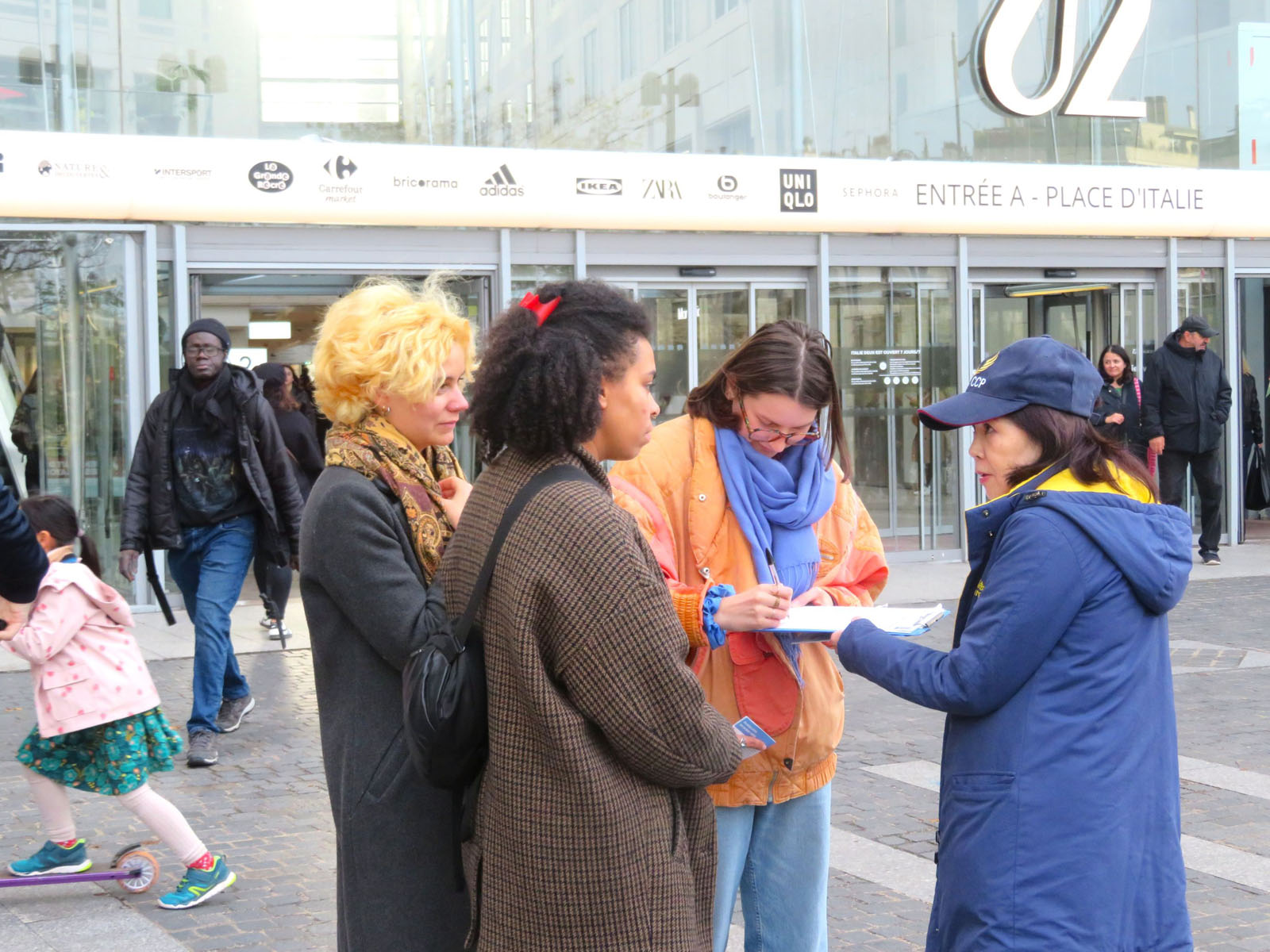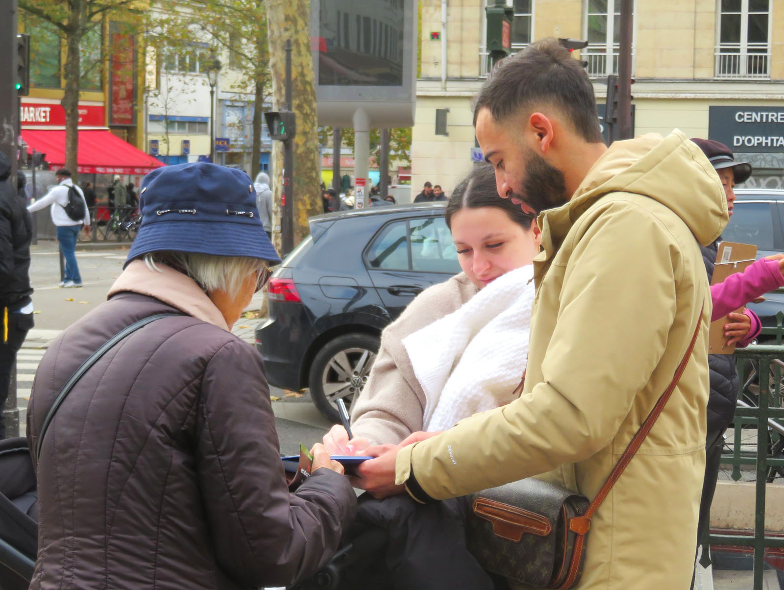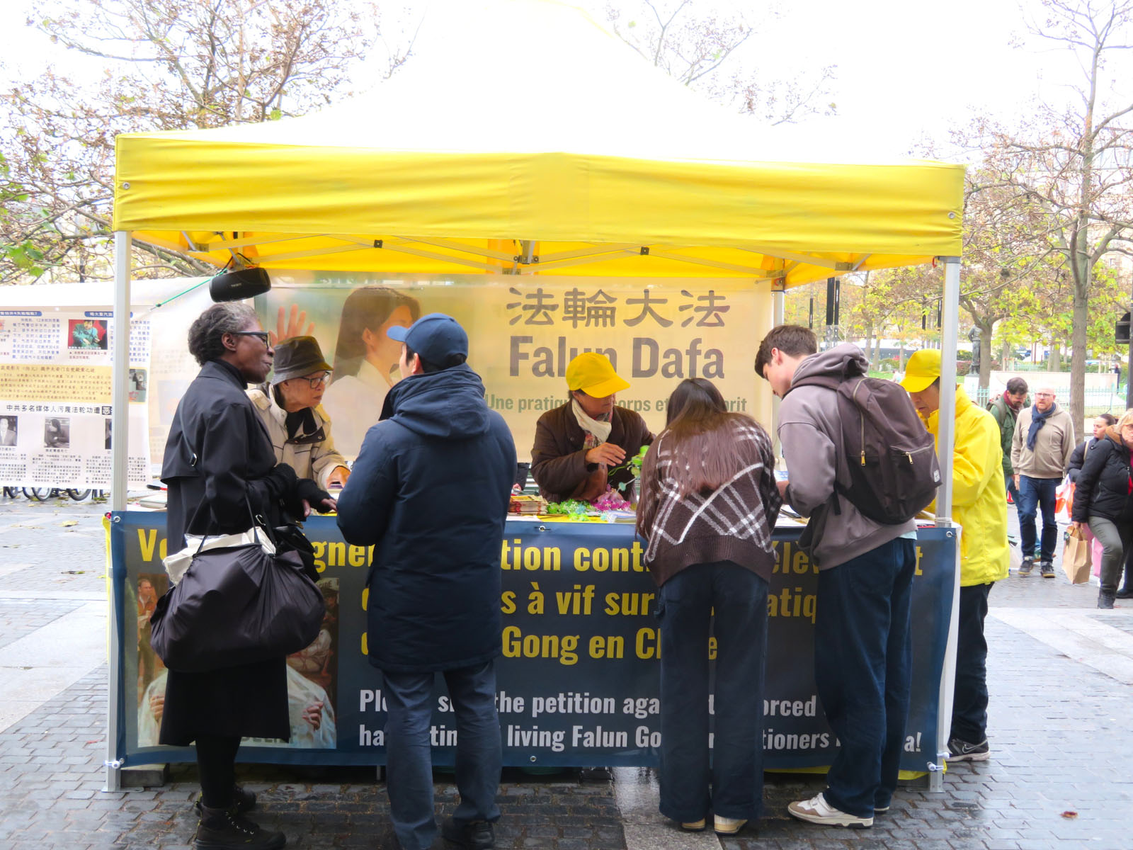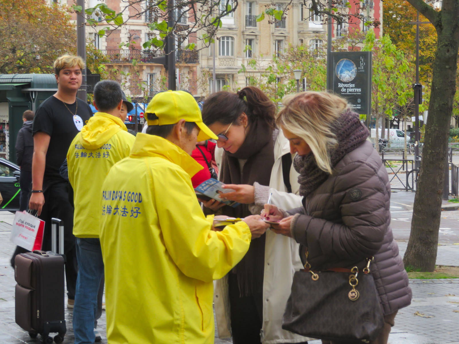 十一月八日星期六下午,在巴黎意大利广场,法轮功学员象往常一样,向民众介绍法轮功及中共迫害法轮功的真相。很多民众签名支持法轮功反迫害。还有一些人想学炼法轮功,询问巴黎炼功点的地址。