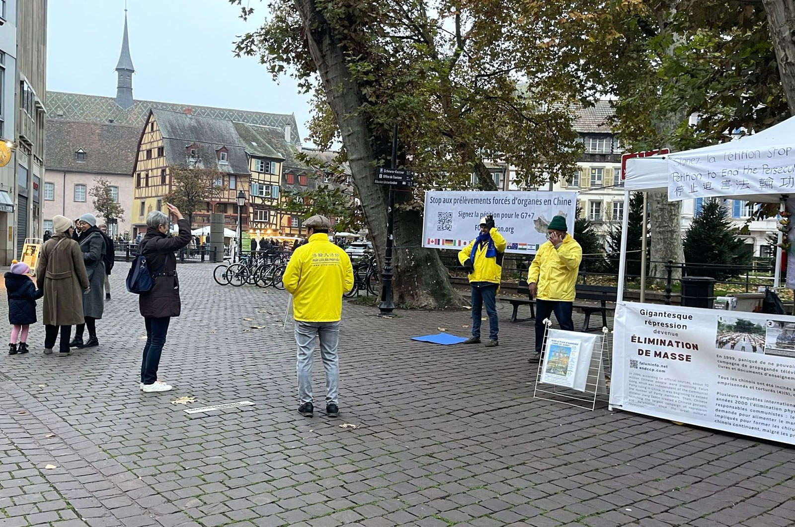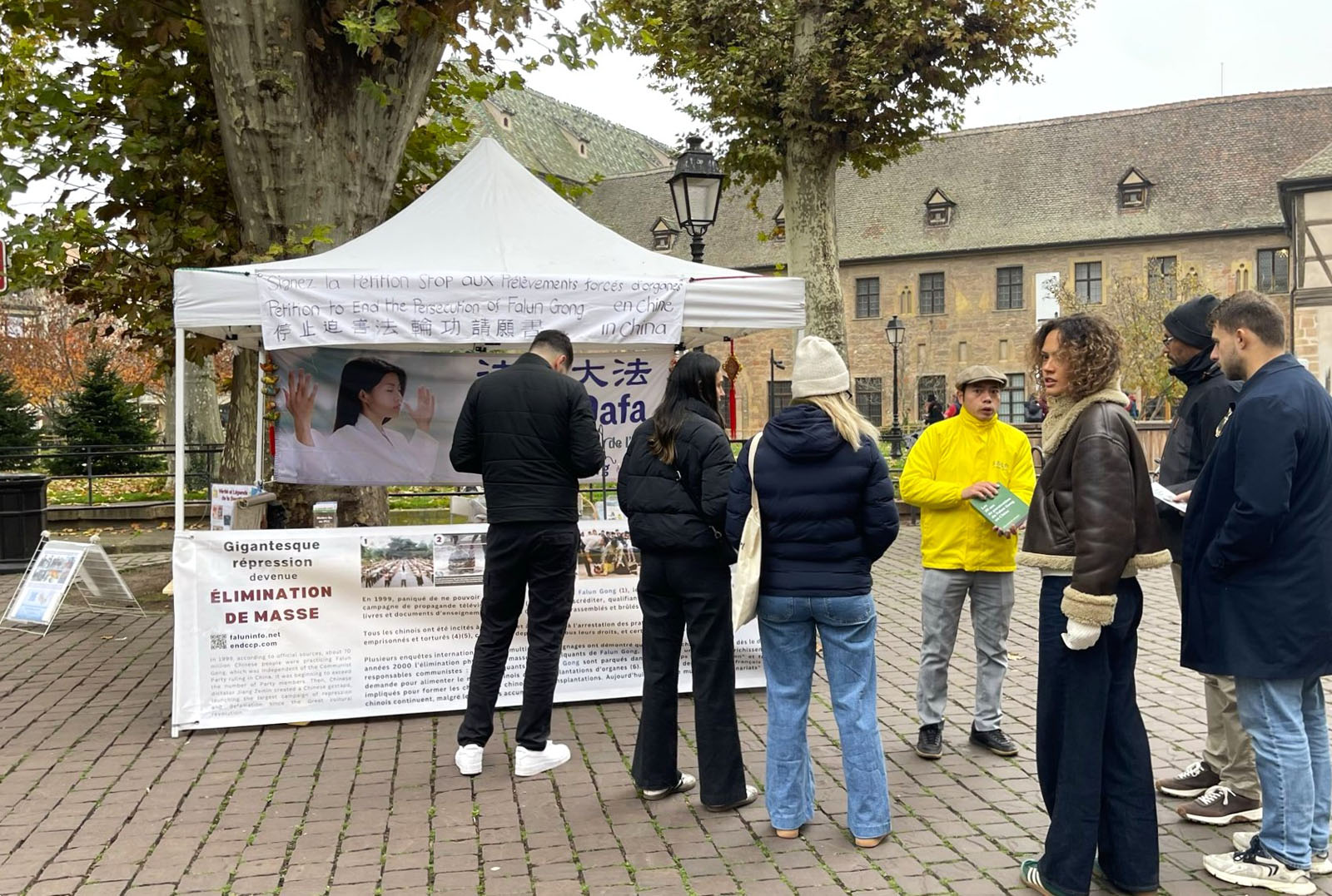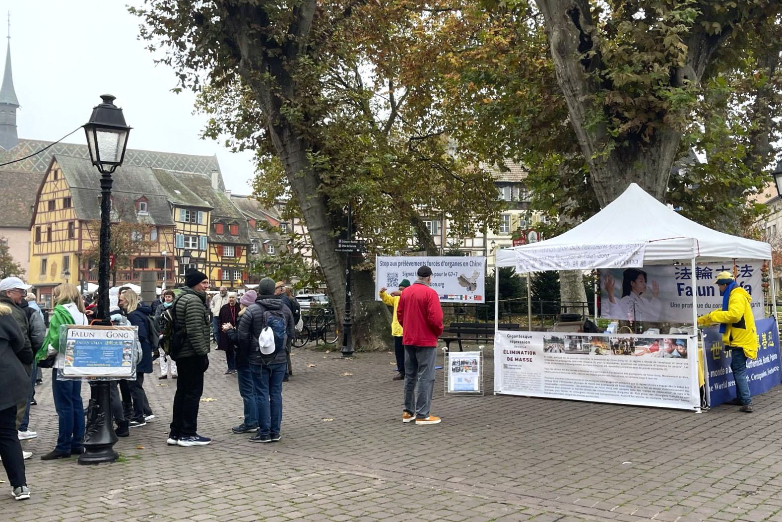 十一月八日星期六,法国东部地区法轮功学员在科尔马(Colmar)市中心的讲真相活动,吸引了当地的居民和来自世界各地的游客。很多人前来了解法轮功,对修炼法轮功表现出极大的热情。许多人签署了请愿书,要求结束与器官贩卖相关的迫害。