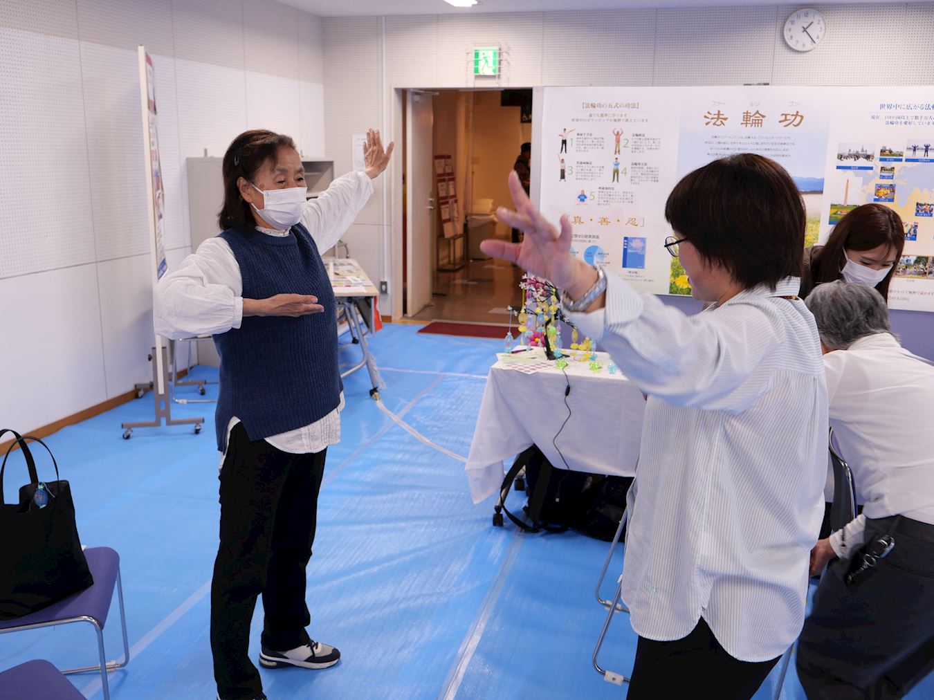 ![]() 图7:涩谷女士(左一,穿蓝色背心者)表示实际尝试学炼后,发现功法节奏适度且流畅,感到非常舒服。 |