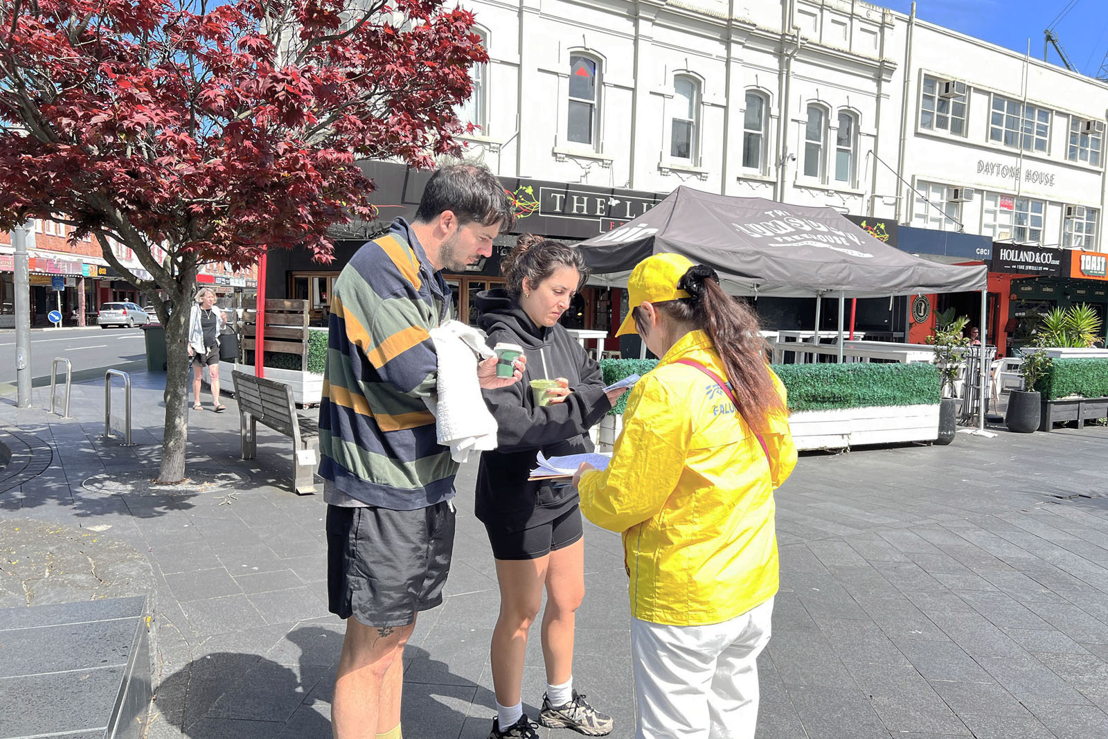 旅居德国、回新西兰探亲的米娜(Mina)和马特(Matt)夫妇在了解法轮功被中共迫害的情况后,深感震惊。米娜说:“这完全是不人道的,不可接受。”