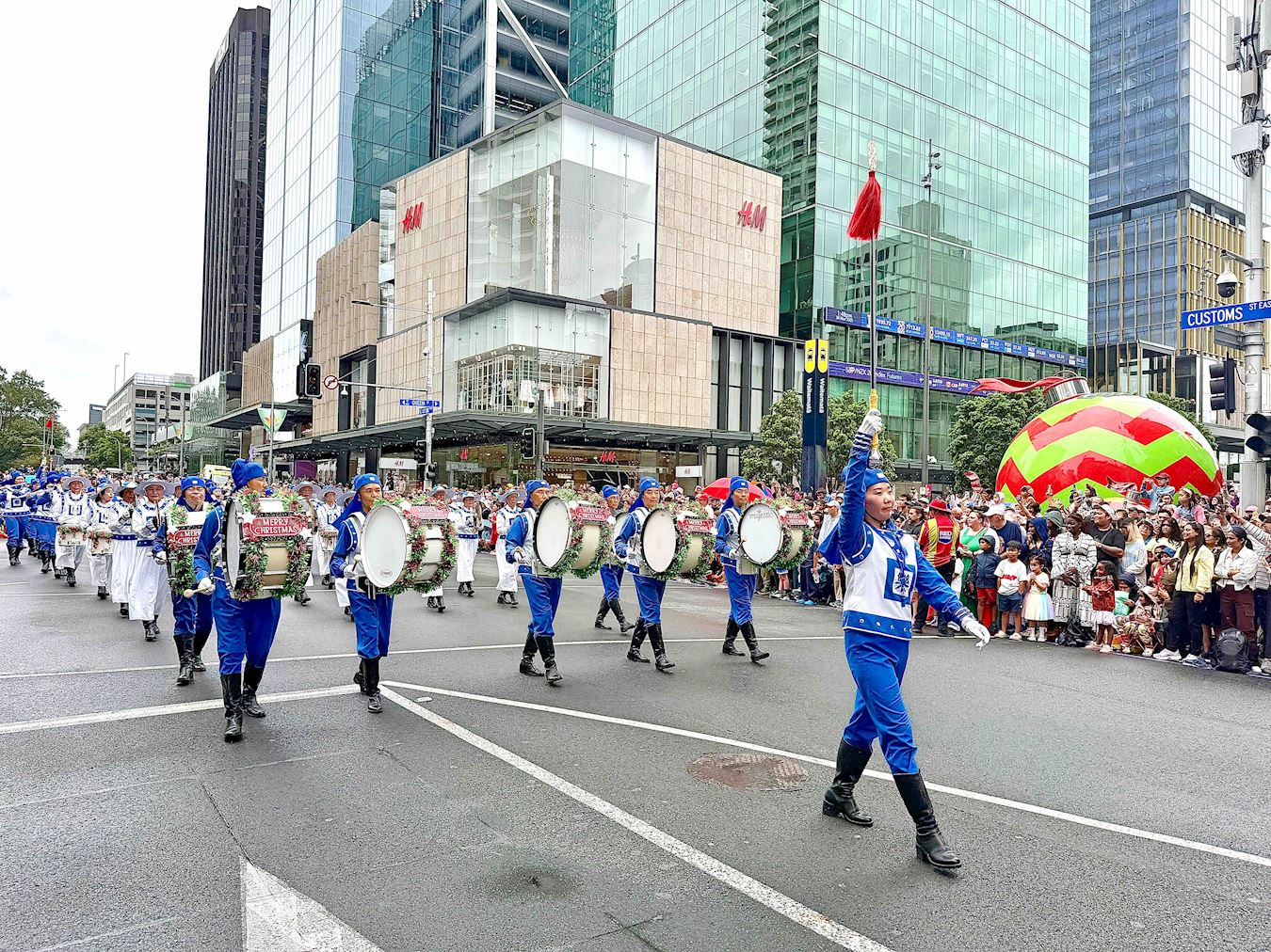 南岛的因弗卡吉尔(Invercargill)与但尼丁(Dunedin)作为新西兰最具代表性的旅游城市,以其古典建筑、风景秀丽闻名。今年,两地的圣诞游行邀请了由法轮功学员组成的腰鼓队参加。整齐划一的鼓阵、节奏鲜明的鼓点,加上学员们脸上阳光般的笑容,让两城的人们感受到一种美好、阳光、平和的力量。