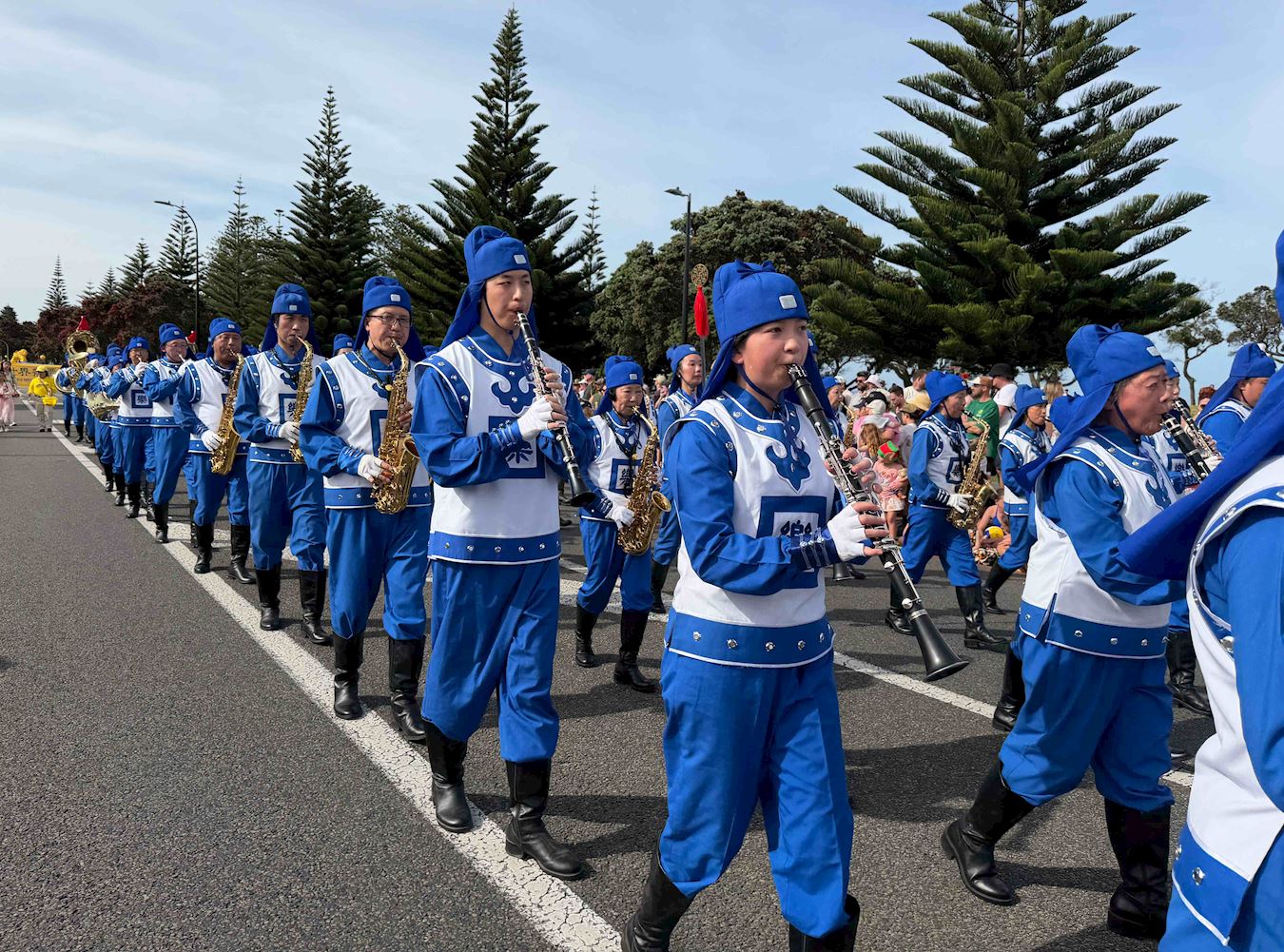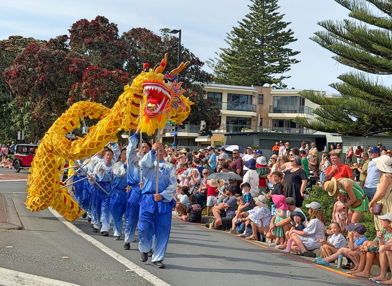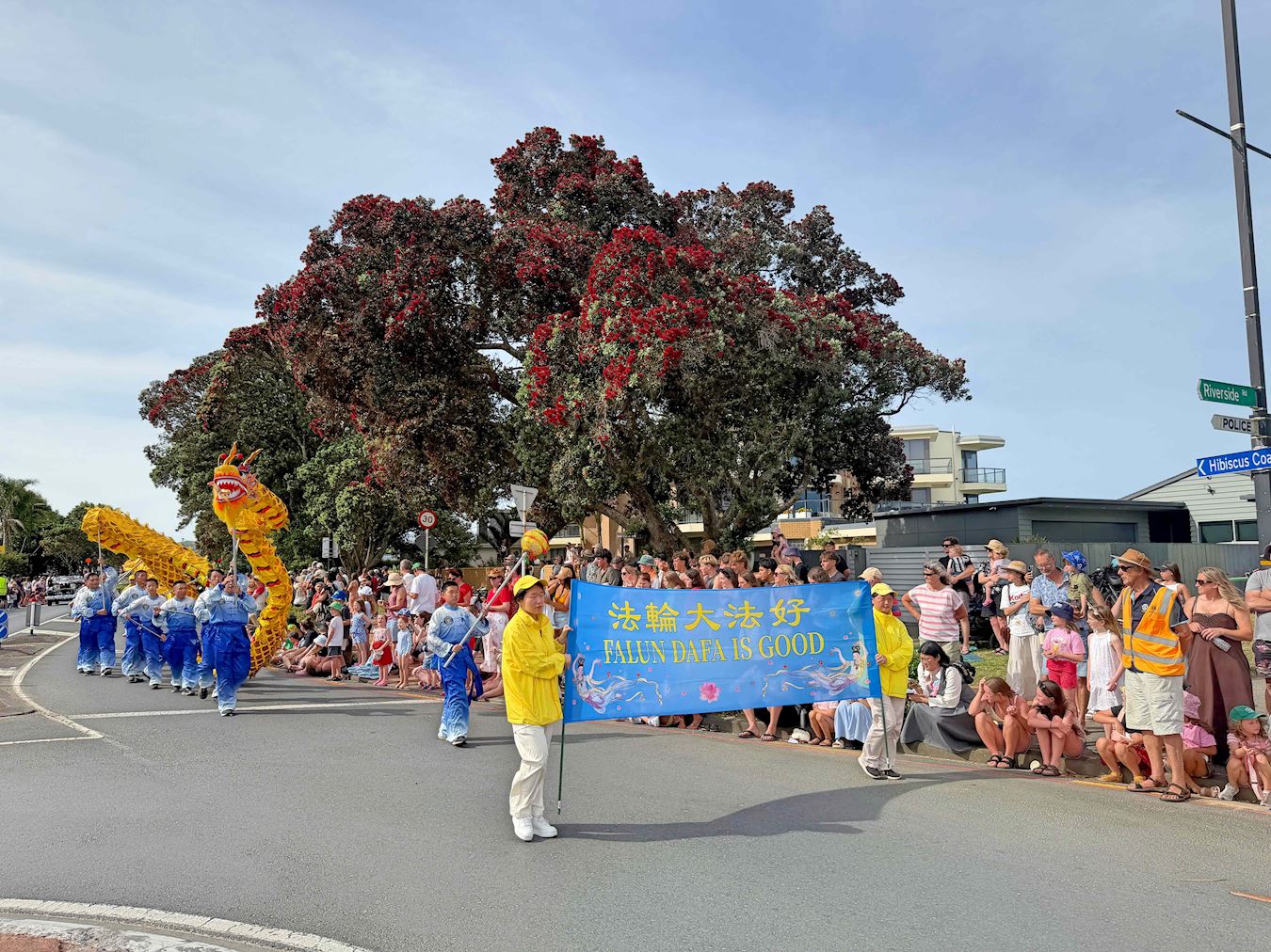 十一月二十九日上午,由法轮功学员组成的舞龙队参加罗托鲁瓦的圣诞游行。下午,法轮功学员的天国乐团、舞龙队同时亮相奥克兰奥雷瓦(Orewa)地区,他们的表演收获了当地居民的热情欢迎。