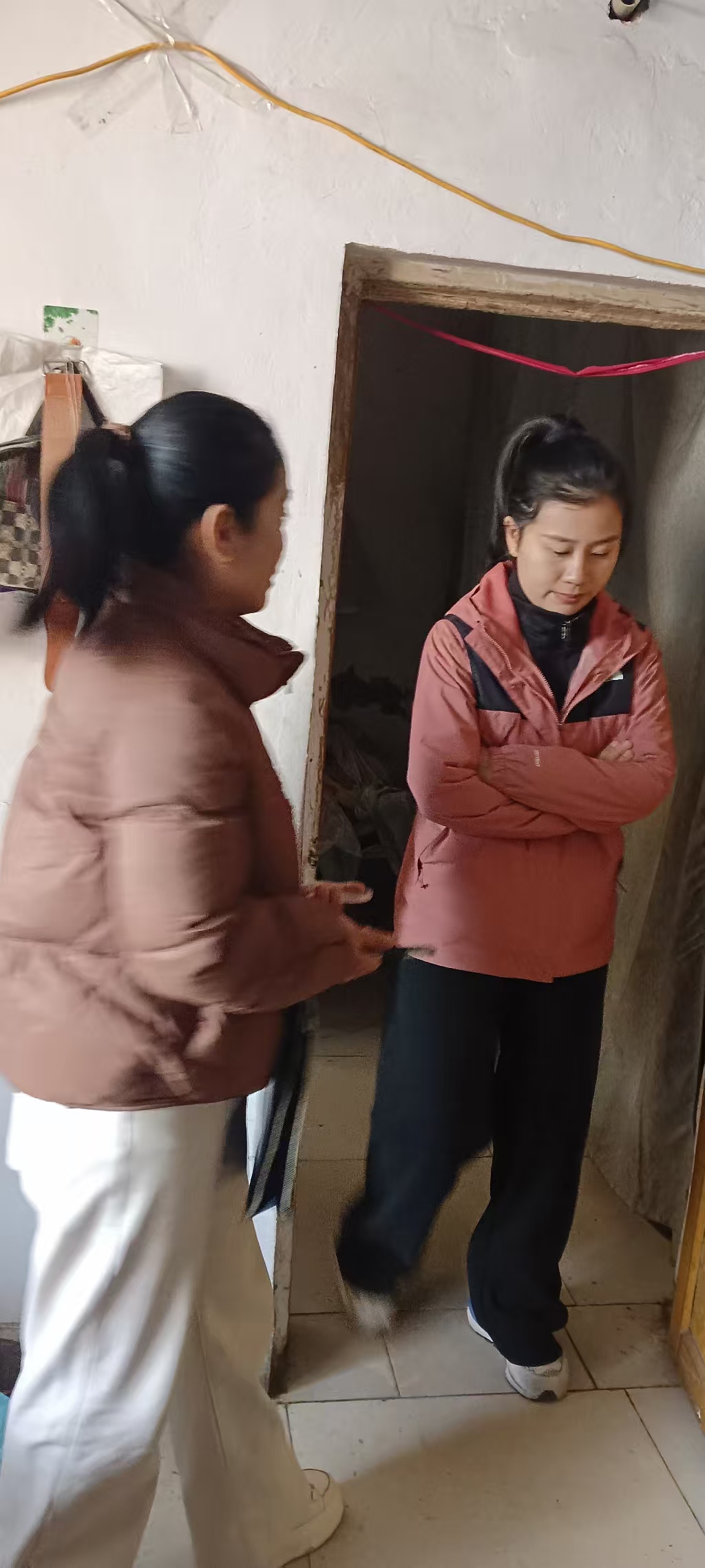 之后,迫害加码,开始晚上剥夺赵晓庆的睡眠,罚站,一站就是几个小时。赵晓庆站不住时,稍微靠墙一下,贾兰就动手打、用脚踢。长时间罚站,赵晓庆的脚肿得非常严重,40码的鞋都穿不上,还得趿拉着,腿也肿得快到膝盖了,站都站不稳。