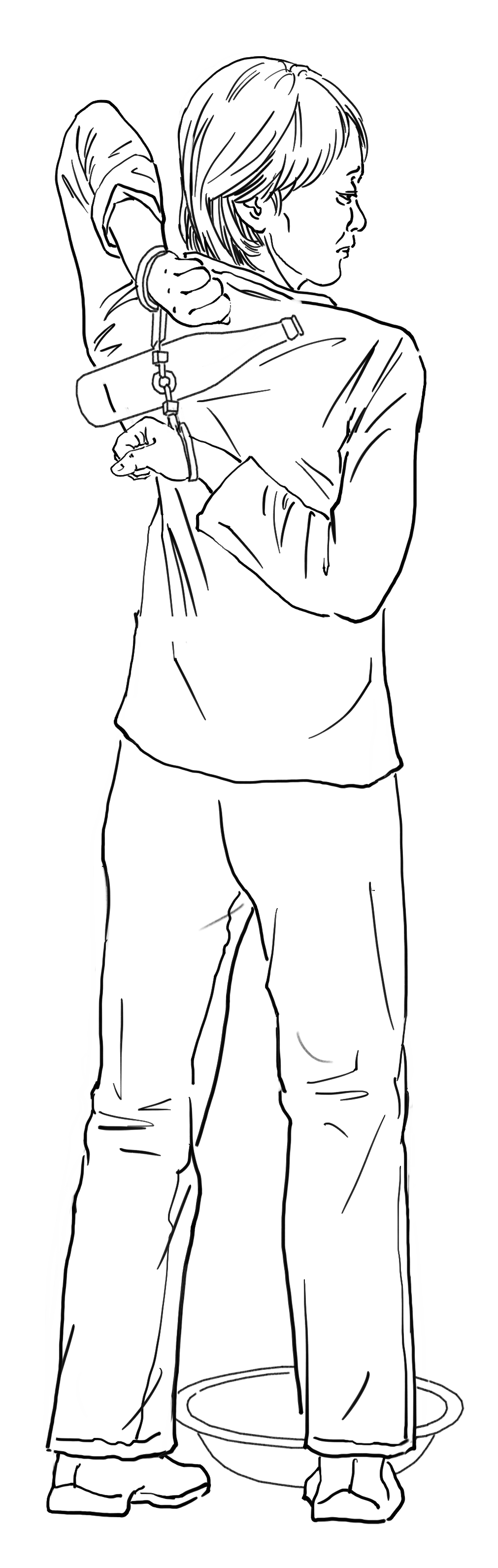 ![]() 中共酷刑示意图:背铐(苏秦背剑) |