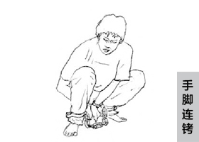 ![]() 中共酷刑示意图:手脚连铐 |