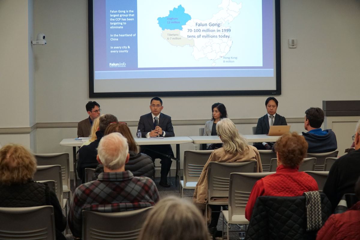 ![]() 图2:在电影放映后举办的座谈会上,专家在回答观众的提问。后排左起:法轮功学员大费城法轮大法学会成员Alex Luchansky,因修炼法轮功被中共迫害监禁五年的原清华大学博士生黄奎,医生反活摘器官组织(DAFOH)心理健康顾问Jessica Russo医生,台湾国际器官移植关怀协会(TAICOT)国际联络官Alex Chen 医生。 |