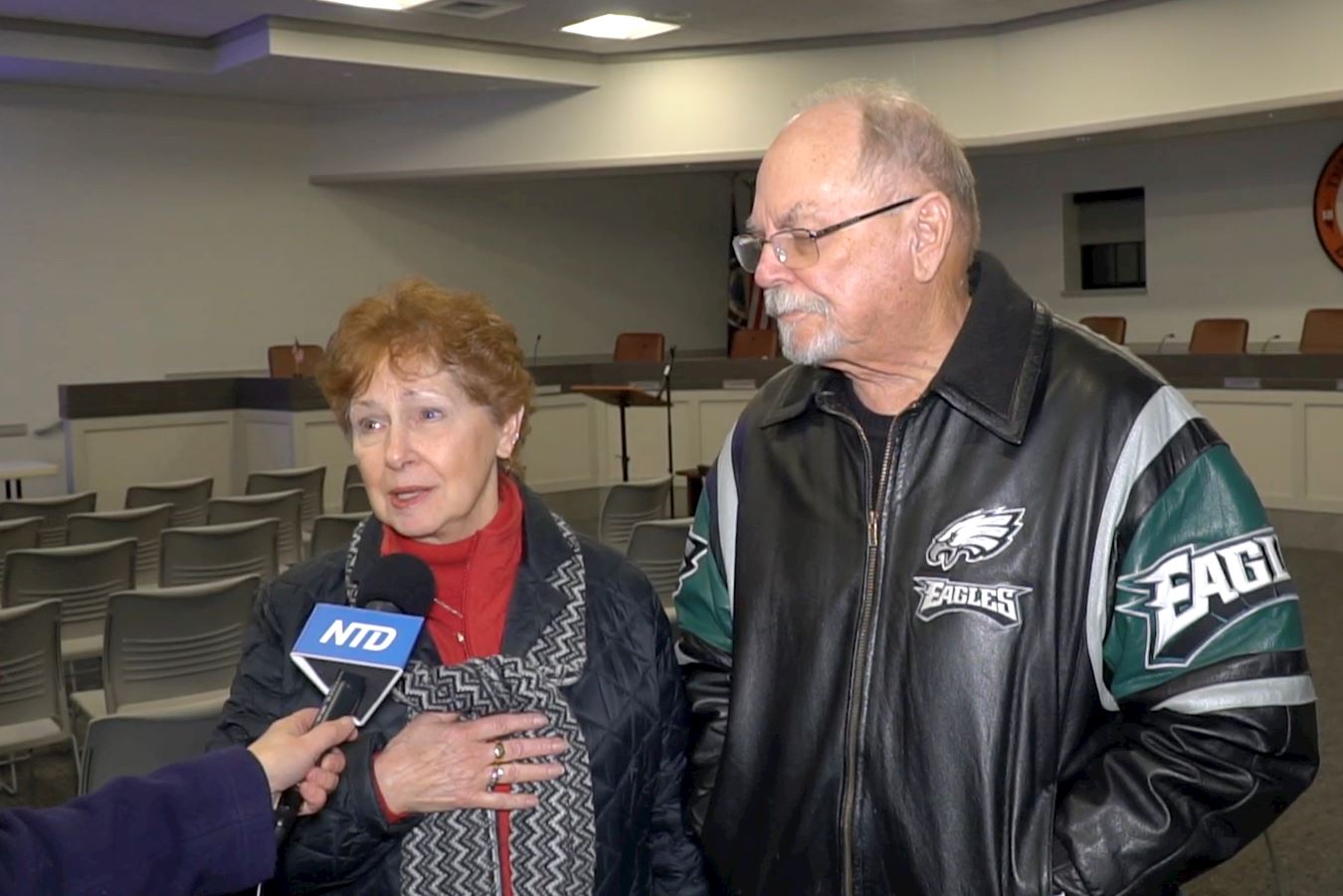 ![]() 图7:退休商人约翰‧鲁比(John Rub)和太太马琳(Marlene)在宾州多伊尔斯敦市政厅观看了《国家器官》。 |