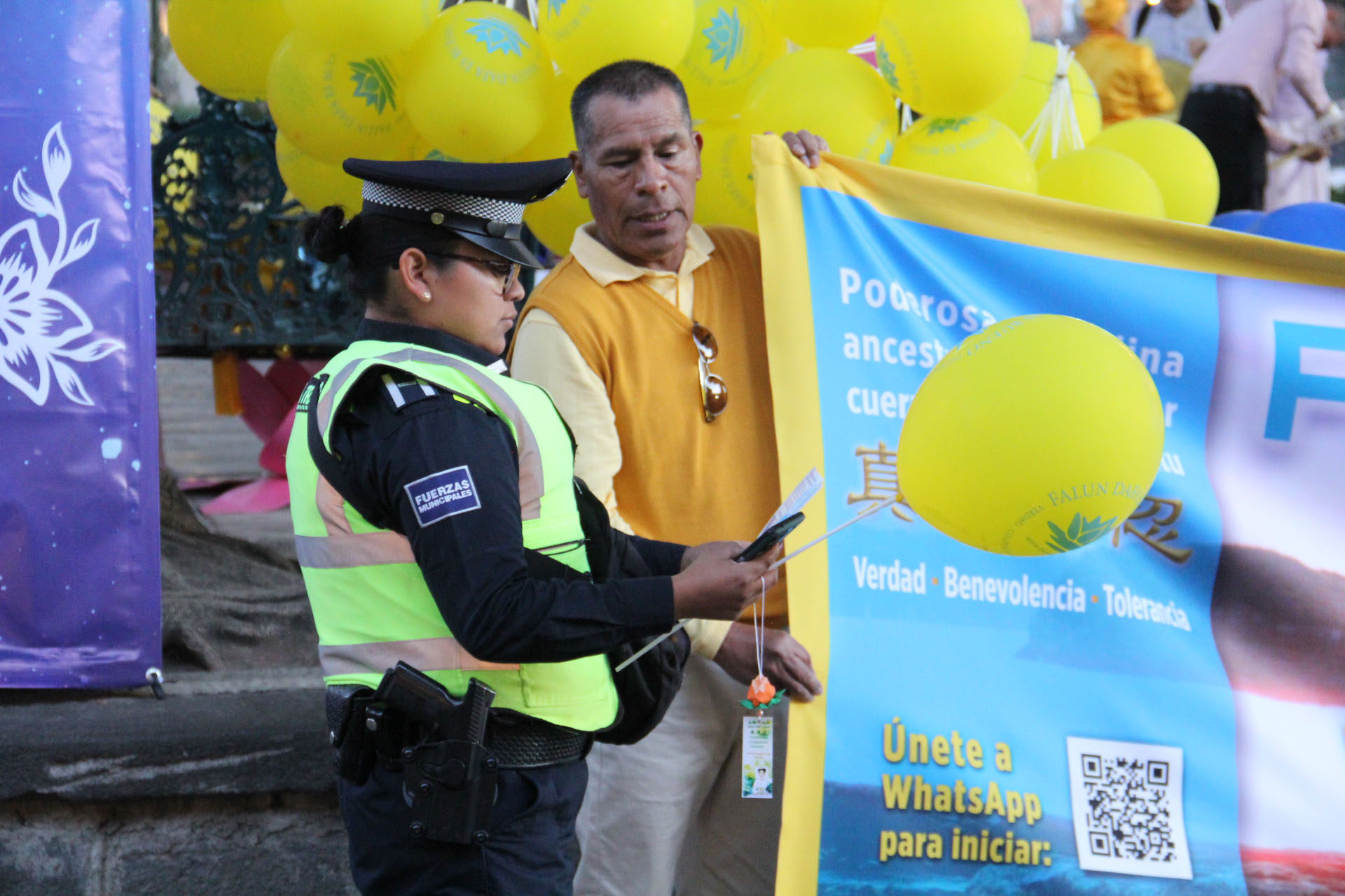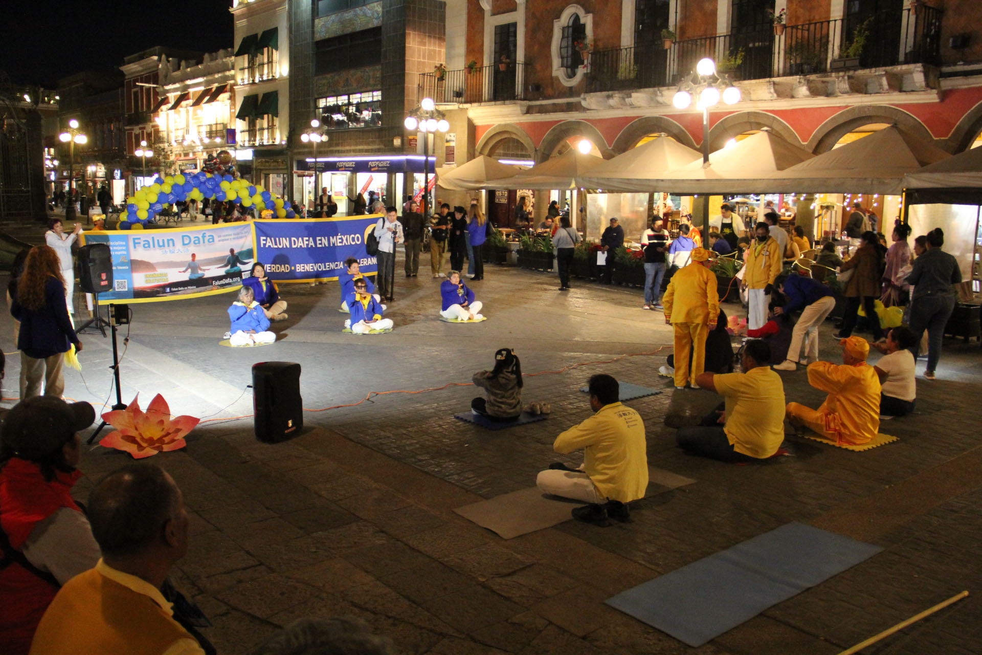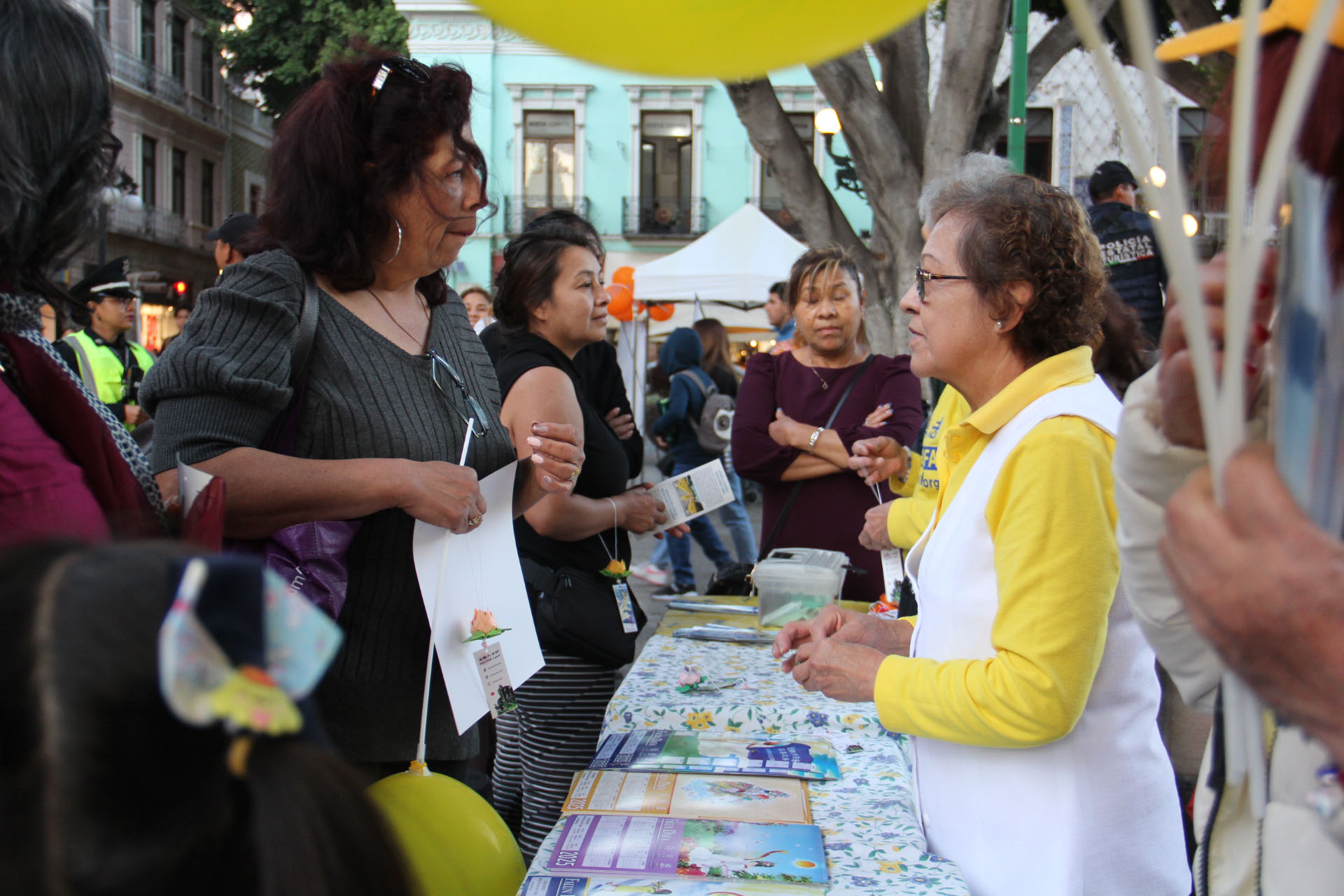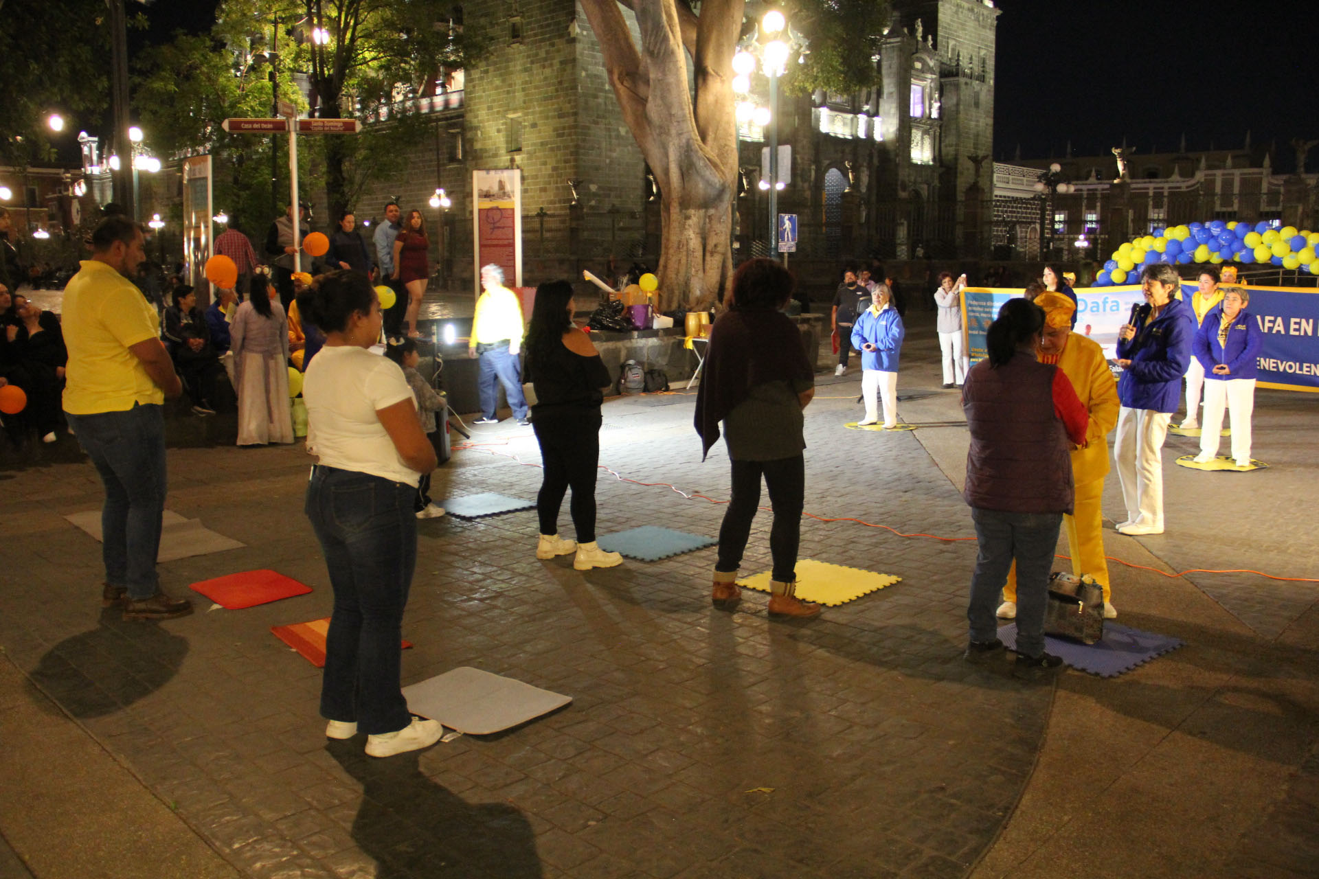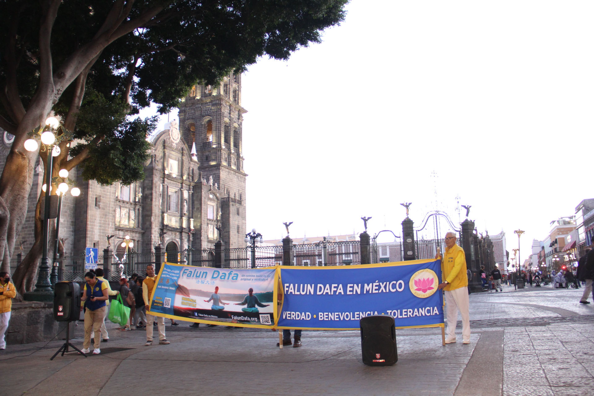 图5:二零二五年一月二十九日,墨西哥法轮功学员在普埃布拉市的主要广场向公众介绍法轮功。