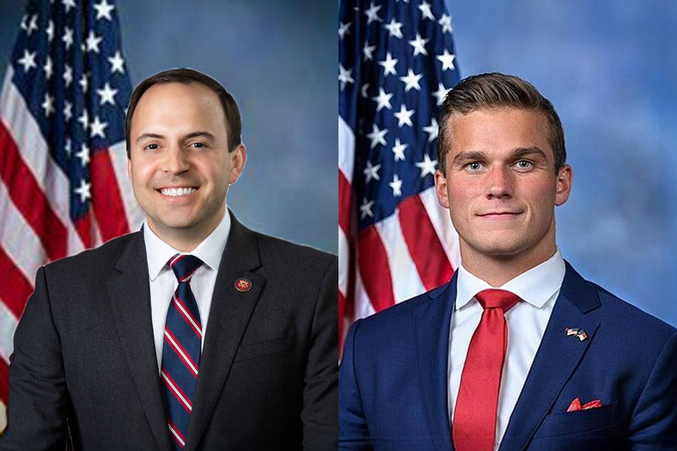 '图1:美国德州国会众议员兰斯·古登(左)和北卡罗莱纳州前国会众议员麦迪逊·考索恩(右)发文,谴责中共炸弹威胁神韵演出。'