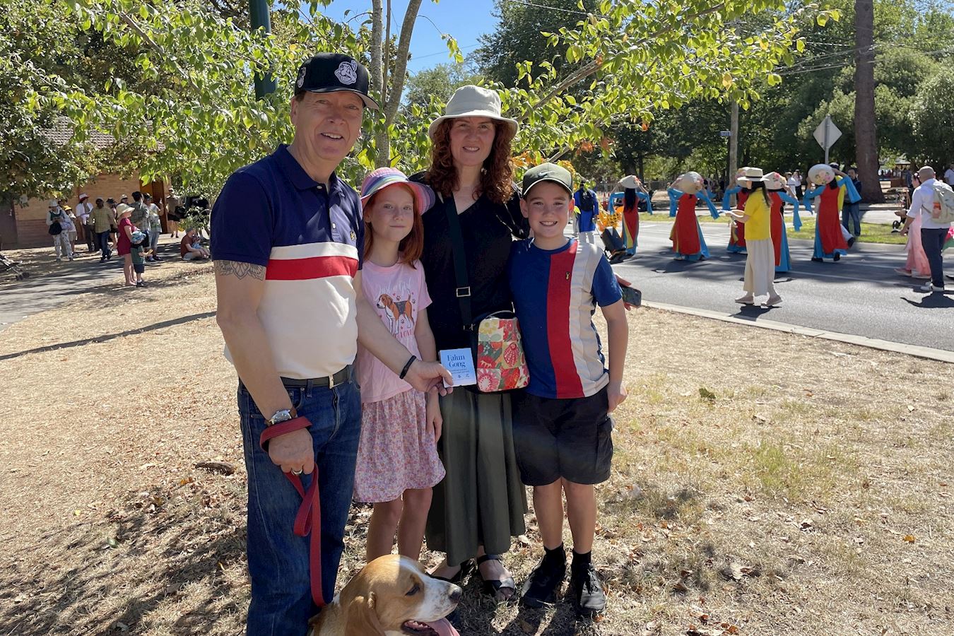 图11:来自墨尔本的瑜伽老师格雷姆・盖梅尔(Graeme Gemmell)和医师妻子凯瑟琳・霍华德(Catherine Howard)携儿女观赏了当天的游行。