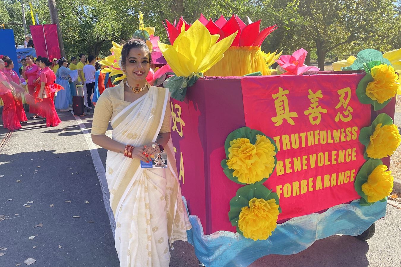 '图1~9:二零二五年三月十日周一,法轮功团体参加了年度秋海棠节(Ballarat Begonia Festival)游行,阵容壮观、绚丽多彩的表演获得市议会花节主办方和观众的欢迎和赞赏。'
