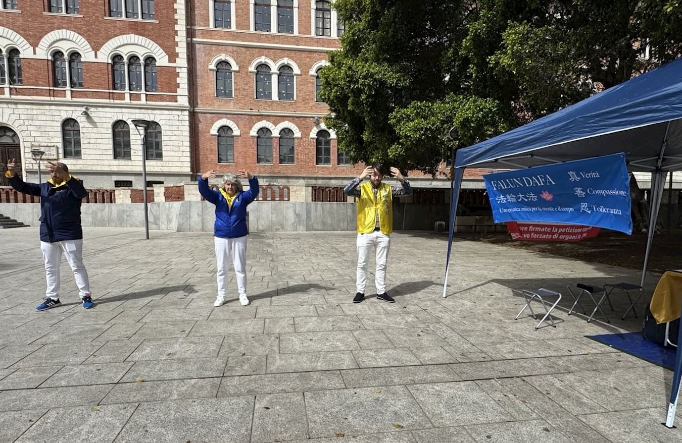 三月十四日,撒丁岛当地法轮功学员在首府卡利亚里(Cagliari)市中心加里波第广场(Piazza Garibaldi)举办了法轮功功法展示及讲真相活动。民众在了解了法轮功修炼者在中国所遭受到的残酷迫害后签名抵制迫害,支持法轮功修炼者的坚持。