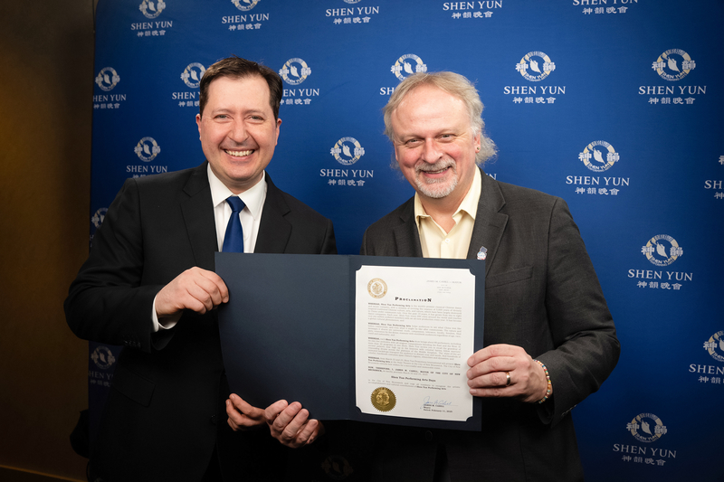 同时他赞扬神韵的正面影响力:“我坚信你们的演出将继续激励、教育和鼓舞各行各业的观众。您所展现的普世价值观——真、善、忍,引起了人们深深的共鸣,并强有力地提醒了我们中国传统文化的丰富性和艺术表达的重要性。”