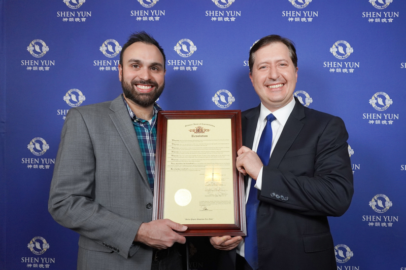 新泽西州参议院主席尼古拉斯·斯库塔里(Nicholas Scutari)、众议院议长克雷格·考夫林(Craig Coughlin)代表新泽西州参众两院全体议员起草并发布了联合决议:新泽西州参众两院高兴地向神韵艺术团致敬,赞扬艺术家以奉献精神,与新泽西州人民分享其非凡技艺。