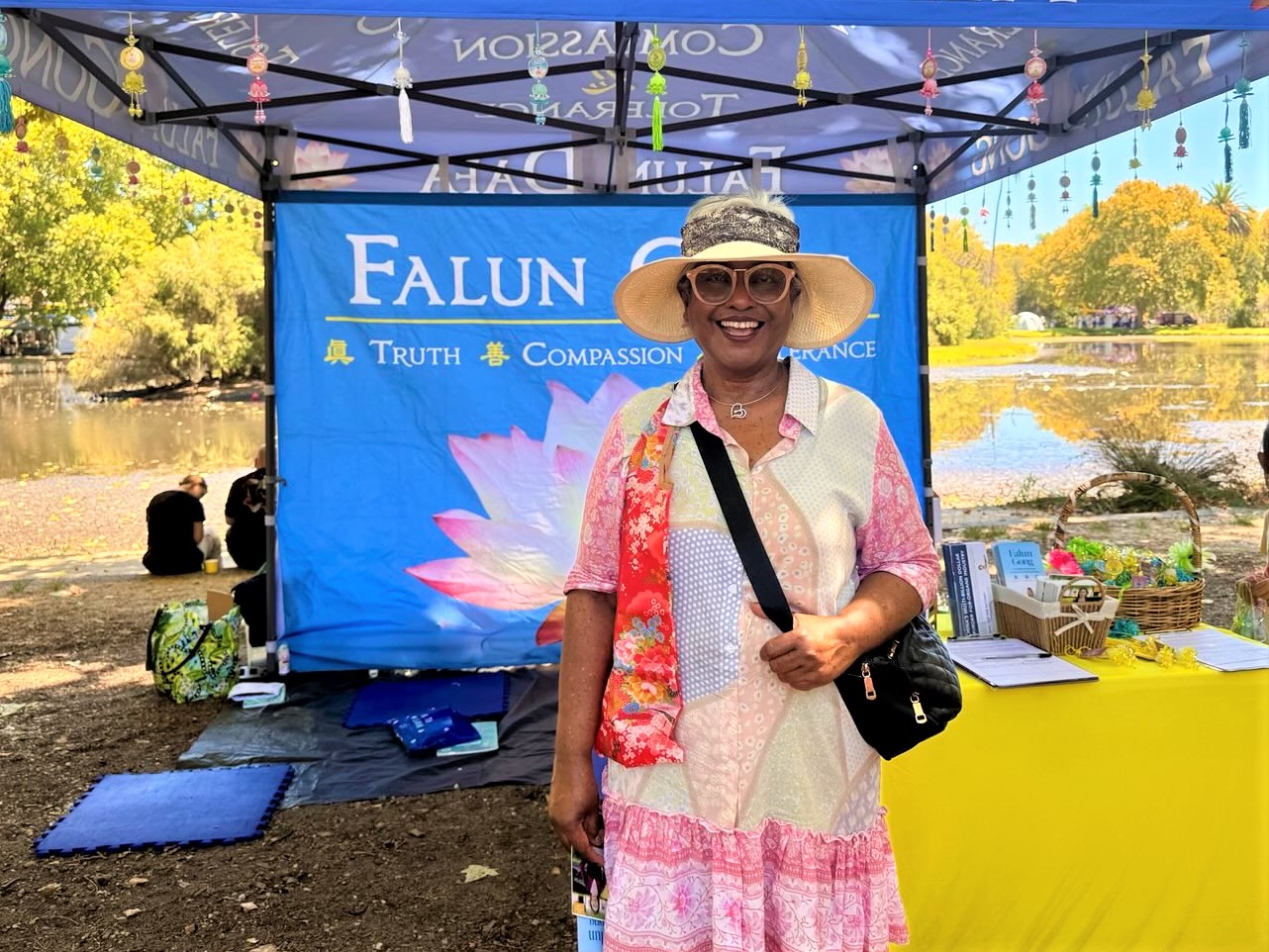 ![]() 图10:赛尔·布莱恩特(Syar Bryant)说,法轮大法展位有一种“非常宁静”的能量场。 |